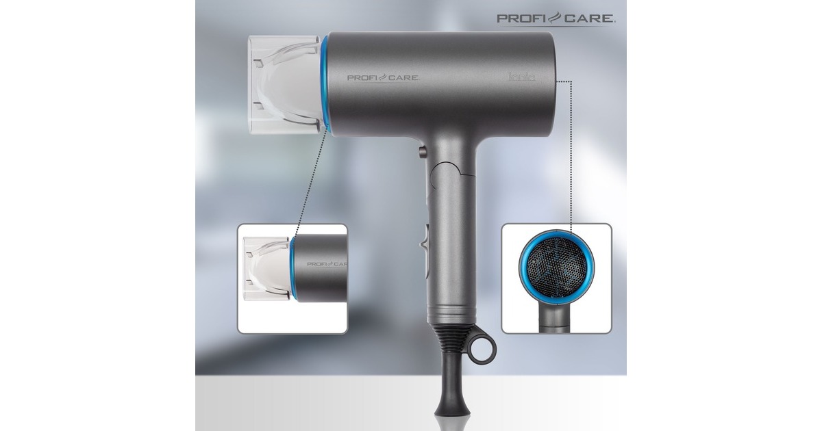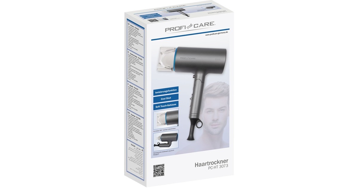 Der PC-HT 3073 Haartrockner von ProfiCare mit 1600 Watt Leistung erfüllt hohe Ansprüche und bietet müheloses Haartrocknen und Stylen für Ergebnisse wie beim Friseur. Der Haartrockner ist trotz seiner Leistung durch den einklappbaren Griff platzsparend aufzubewahren. Er verfügt zudem über eine Ionisierungsfunktion, die eine bessere Frisierbarkeit durch Anti-Statik-Effekt ermöglicht. Das Haar trocknet nicht aus, wird geschmeidig und glänzend. Die mitgelieferte Formdüse kann für ein gezieltes Styling aufgesteckt werden. Drei Temperatur- und Gebläsestufen ermöglichen beim PC-HT 3073 eine individuelle Einstellung.Art.-Nr.: 1651756