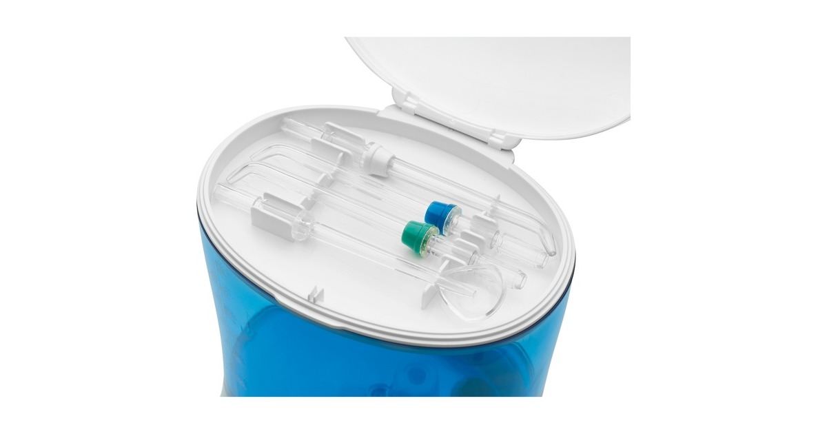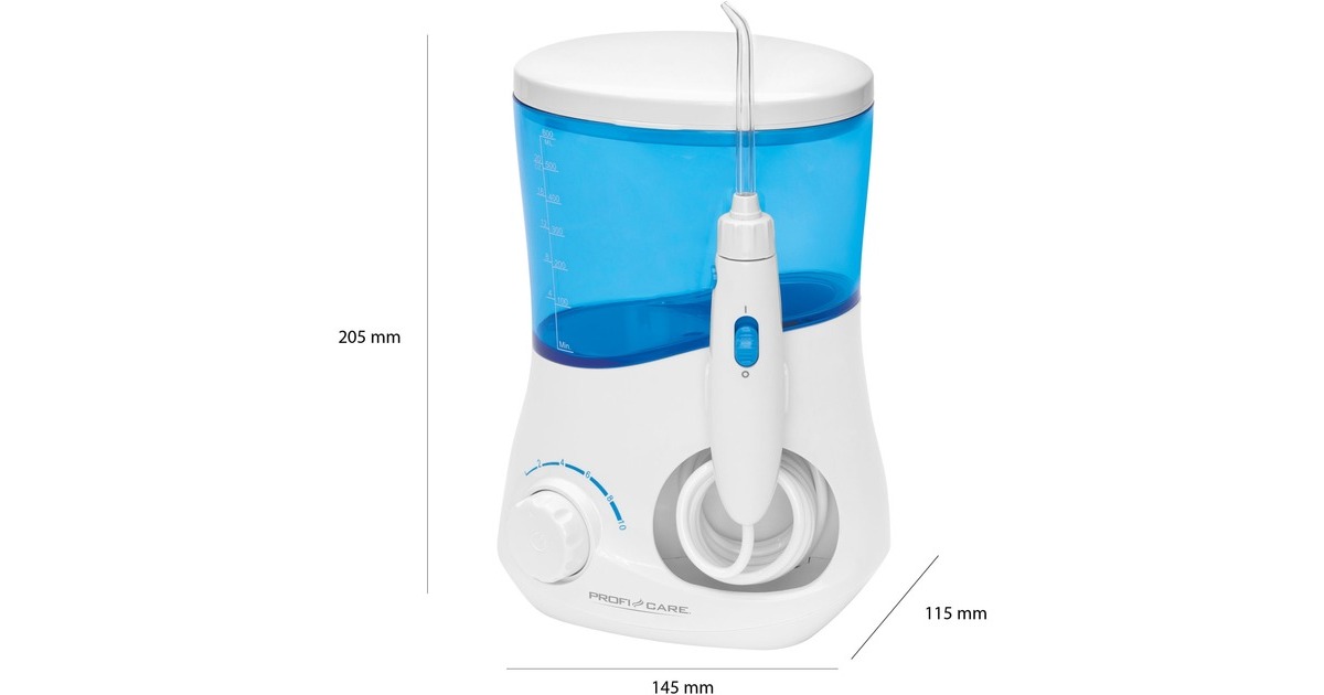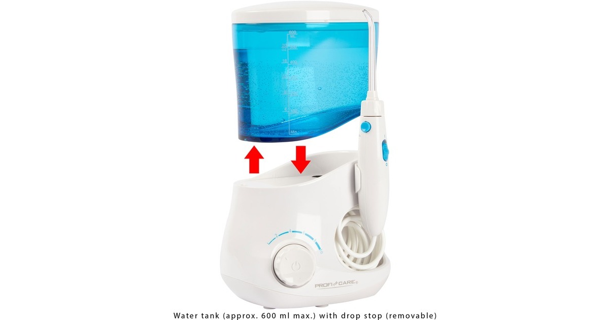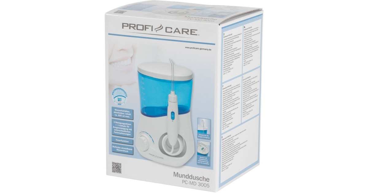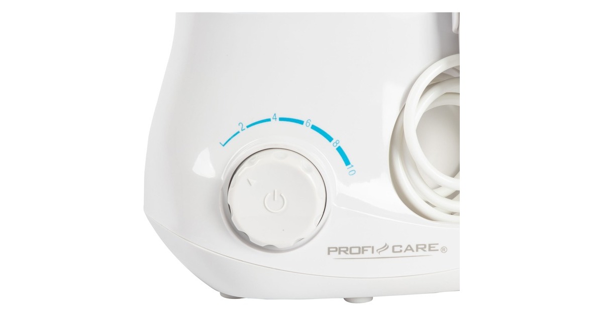 Die PC-MD 3005 von ProfiCare ist eine Munddusche für optimale Mundhygiene und zur Reinigung und Massage des Zahnfleisches sowie zur Zahnzwischenraumreinigung. Über einen Drehregler lässt sich der Wasserdruck stufenlos regeln und somit die Reinigung individuell anpassen. Über einen Schalter am Handgriff lässt sich der Wasserstrahl bei Bedarf unterbrechen. Der Handgriff wird einfach per Magnethalterung befestigt. Die PC-MD 3005 verfügt außerdem über einen 2-Minuten-Timer zur Einhaltung der empfohlenen Reinigungsdauer. Zur weiteren Ausstattung gehört ein Deckel mit integriertem Aufbewahrungsfach für die Aufsätze und eine Ablagevorrichtung für den Schlauch.Art.-Nr.: 1542157