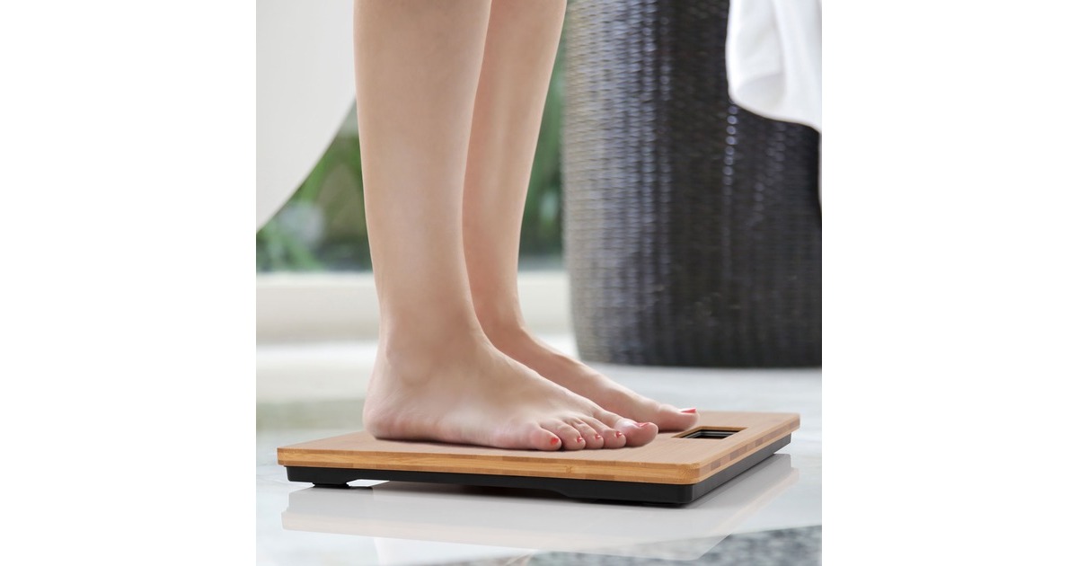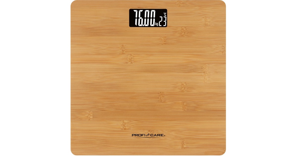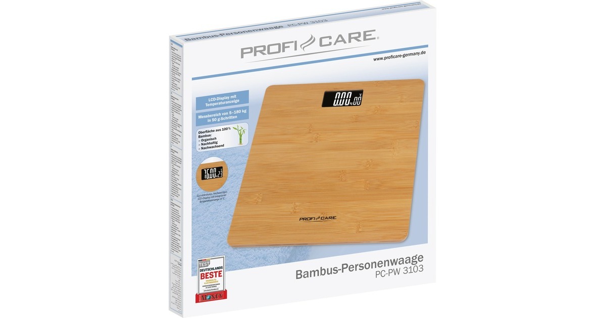 Die Personenwaage PC-PW 3103 überzeugt durch ihre nachhaltige Oberfläche aus 100 % Bambus. Das gut ablesbare, hochwertige LCD-Display bietet eine integrierte Temperaturanzeige in °C und die Maßeinheit lässt sich zwischen kg, lb umstellen. Der Messbereich liegt zwischen 5 – 180 kg in 50 g-Schritten. Für einen sicheren Stand der Waage sorgen die Anti-Rutschfüße, die Abschaltautomatik erhöht die Batterielebensdauer.