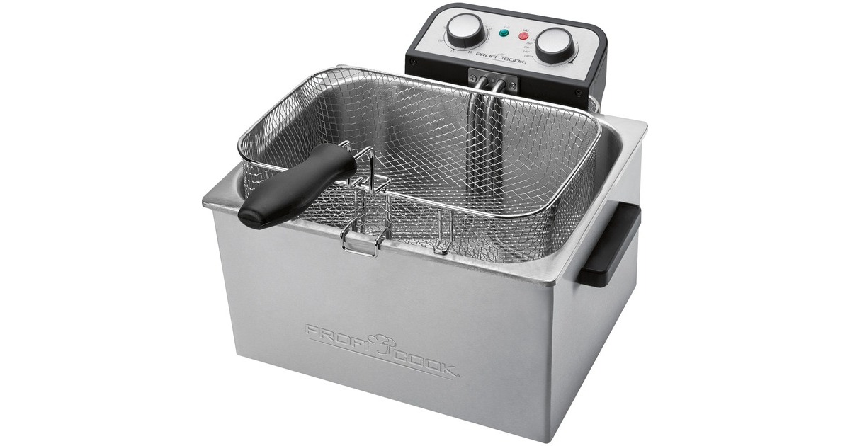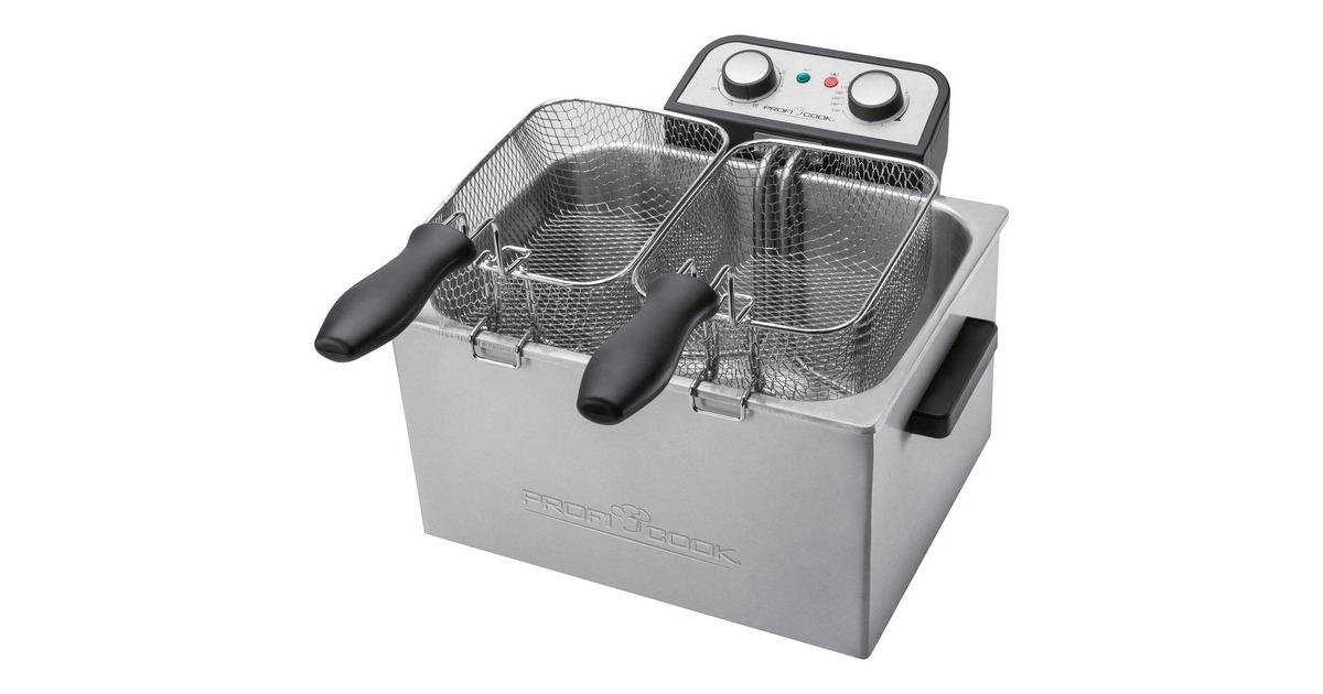 Die PC-FR 1038 Doppel-Fritteuse von ProfiCook fasst 5 Liter Öl und erhitzt dieses dank Kaltzonentechnik besonders schnell und geruchsarm. Für verschiedenes Frittiergut stehen entweder 2 kleine Körbe, oder ein großer Korb zur Verfügung. Das Thermostat lässt sich im Bereich von 130 °C bis 190 °C Stufen los regeln und ist dazu mit einem 30 Minuten Timer ausgestattet. Fettbehälter und Heizspirale sind zur einfachen Reinigung herausnehmbar.Art.-Nr.: 1459593