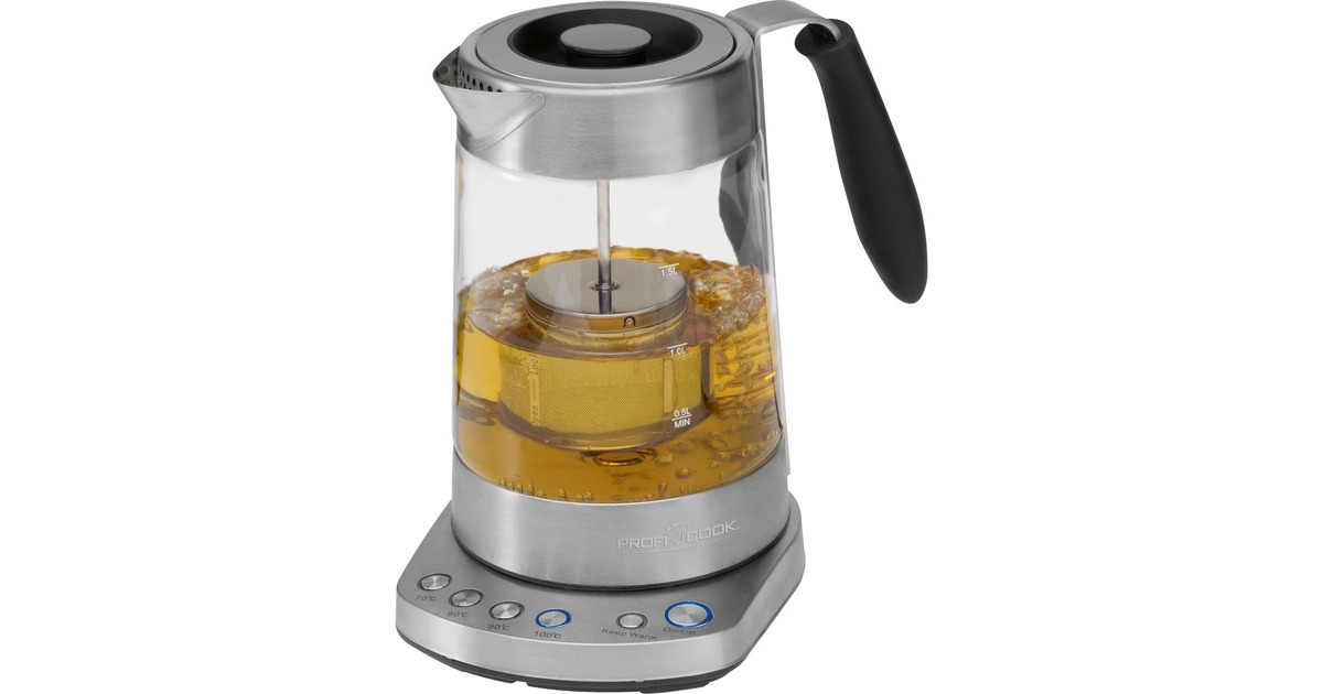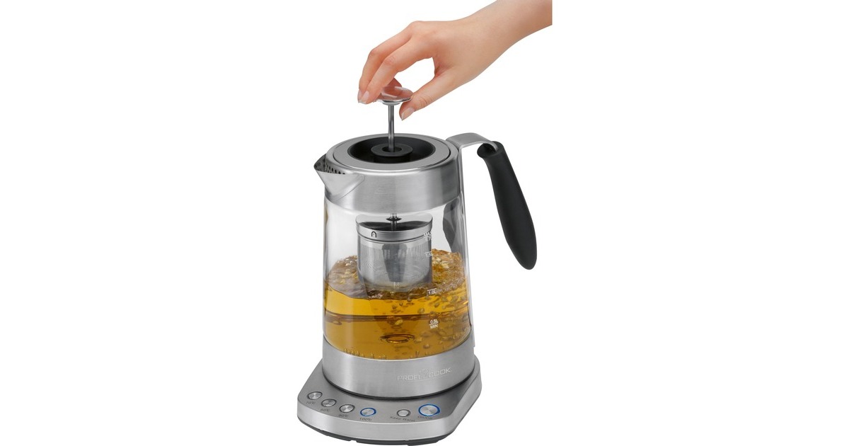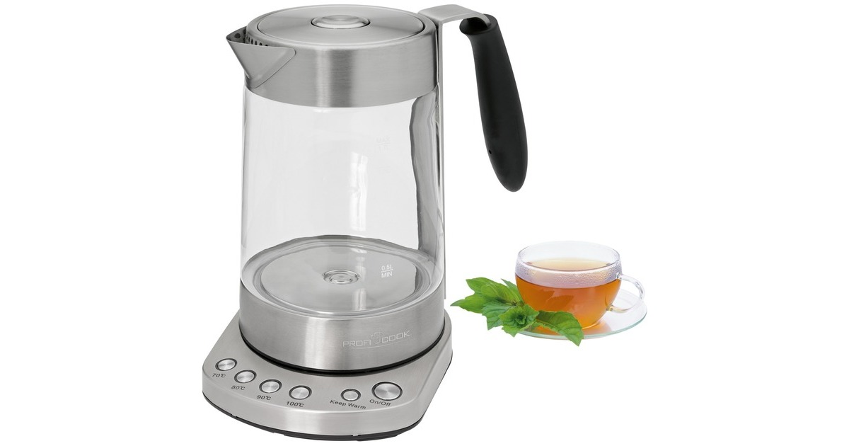 Der ProfiCook PC-WKS 1020G ist ein 2-in-1 Wasser- und Teekocher im eleganten Edelstahlgehäuse mit transparentem Wasserbehälter aus hitzebeständigem Glas. Der Wasserkocher besitzt eine drahtlose 360° Basisstation, 1,7 Liter Fassungsvermögen und kann wahlweise manuell oder automatisch abgeschaltet werden. Zum Kochen des Tees liegt ein zweiter Deckel inklusive Teefilter bei, der bei Bedarf einfach getauscht werden kann. Neben der regelbaren Temperatur zwischen 70 - 100°, kann der gekochte Tee/das gekochte Wasser mittels Warmhalte-Funktion auf einer bestimmten Temperatur gehalten werden.Art.-Nr.: 1459710