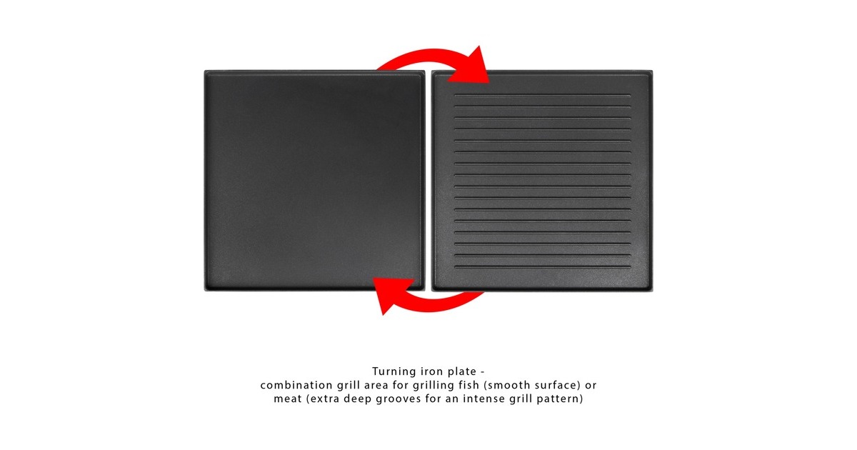 Gesamte Grillfläche: ca. 48,5 x 24 cm (2x ca. 24 x 24 cm). |