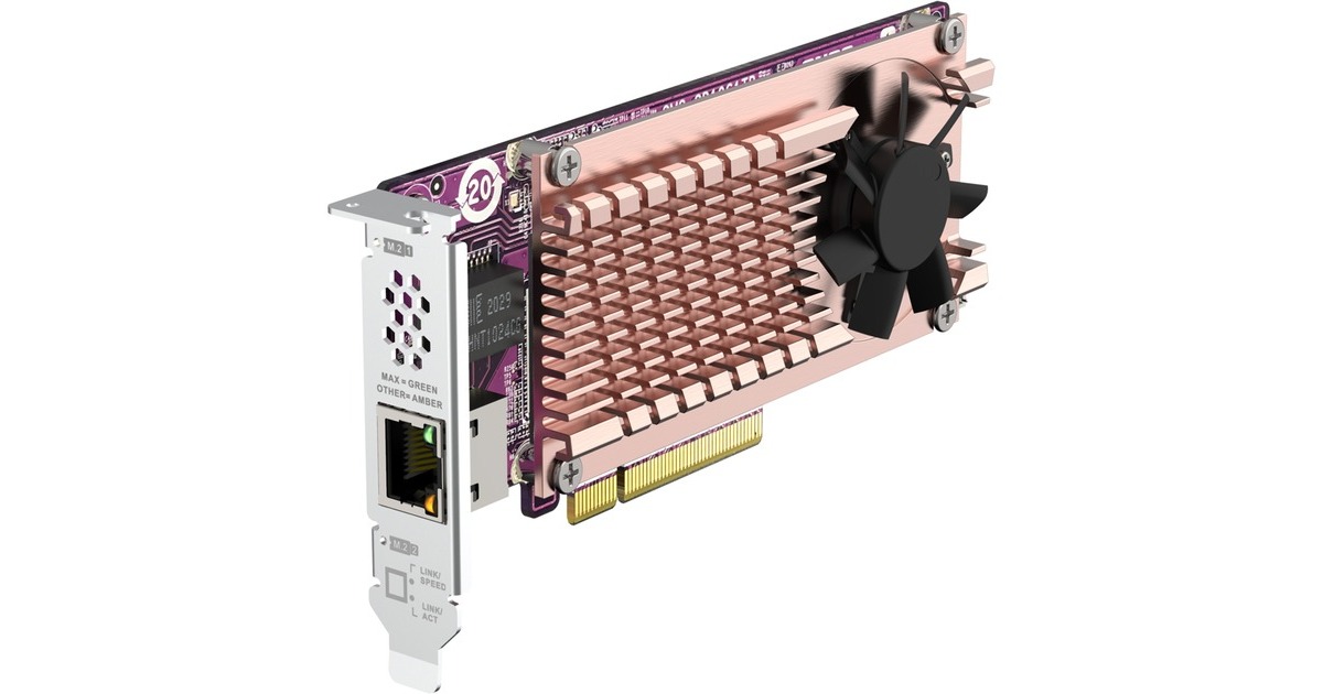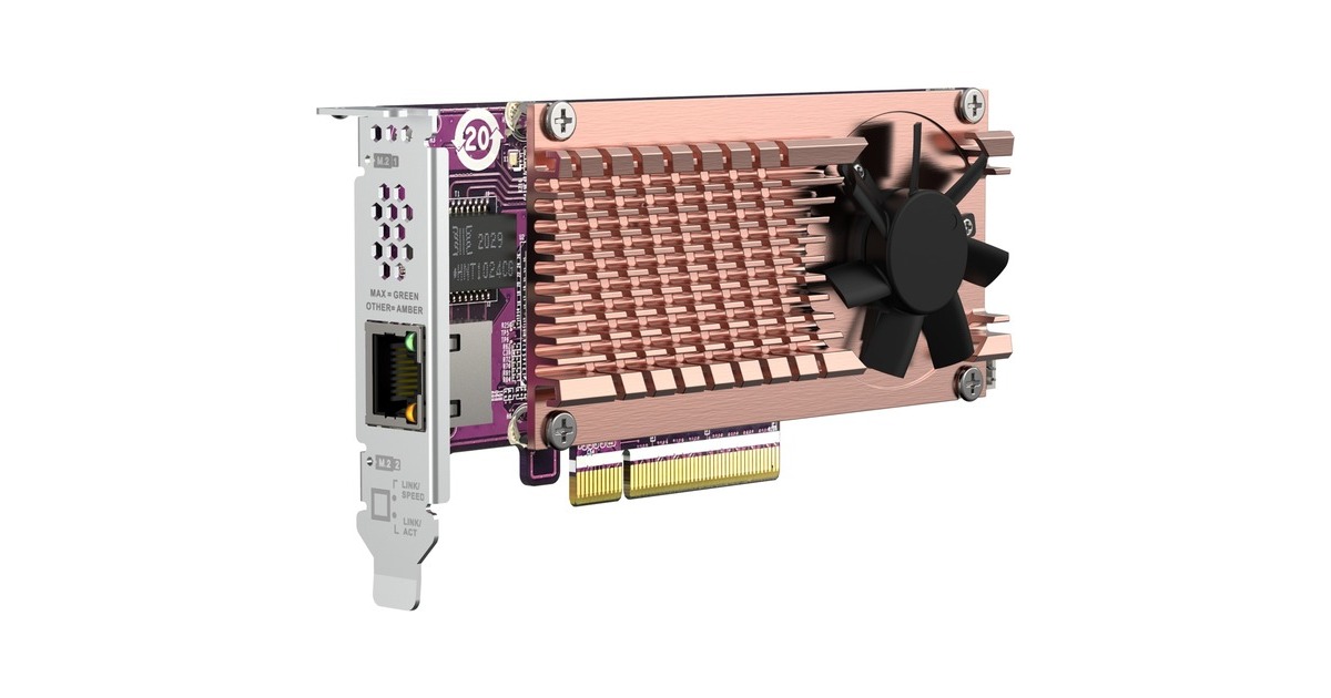 Mit der QM2-2P10G1TB können Sie ganz einfach zwei M.2 NVMe SSDs und 10GbE RJ45 Konnektivität zu Ihrem QNAP NAS hinzufügen. Im Vergleich zur SATA-Schnittstelle bietet die PCIe Gen3 x 8 Schnittstelle der QM2-2P10G1TB eine höhere Bandbreite für eine schnellere Verarbeitungsgeschwindigkeit und einen schnelleren Datenzugriff.
