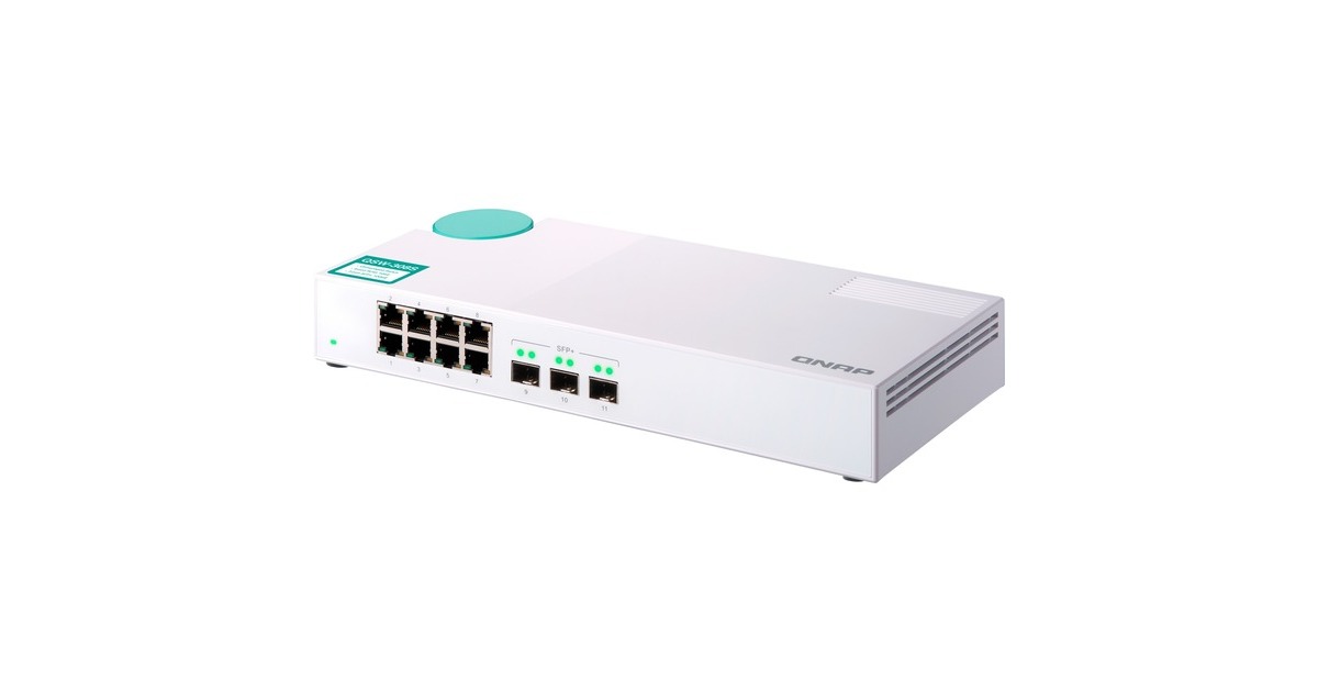 Der QSW-308S ist ein 3-Port 10G SFP+ und 8-Port Gigabit Unmanaged Switch mit drei 10GbE-SFP+ Ports (mit einem 10GbE-SFP+/RJ45 Kombi-Port) und acht Gigabit-Ports. Der QSW-308S ermöglicht Ihnen ein sofortiges Upgrade auf eine hybride High-Speed-Netzwerkumgebung zu einem kostengünstigen Preis und ist mit den 10GbE- und NBASE-T-Technologien kompatibel, um bis zu fünf Geschwindigkeiten (10G / 5G / 2,5G / 1G / 100M) zu unterstützen.