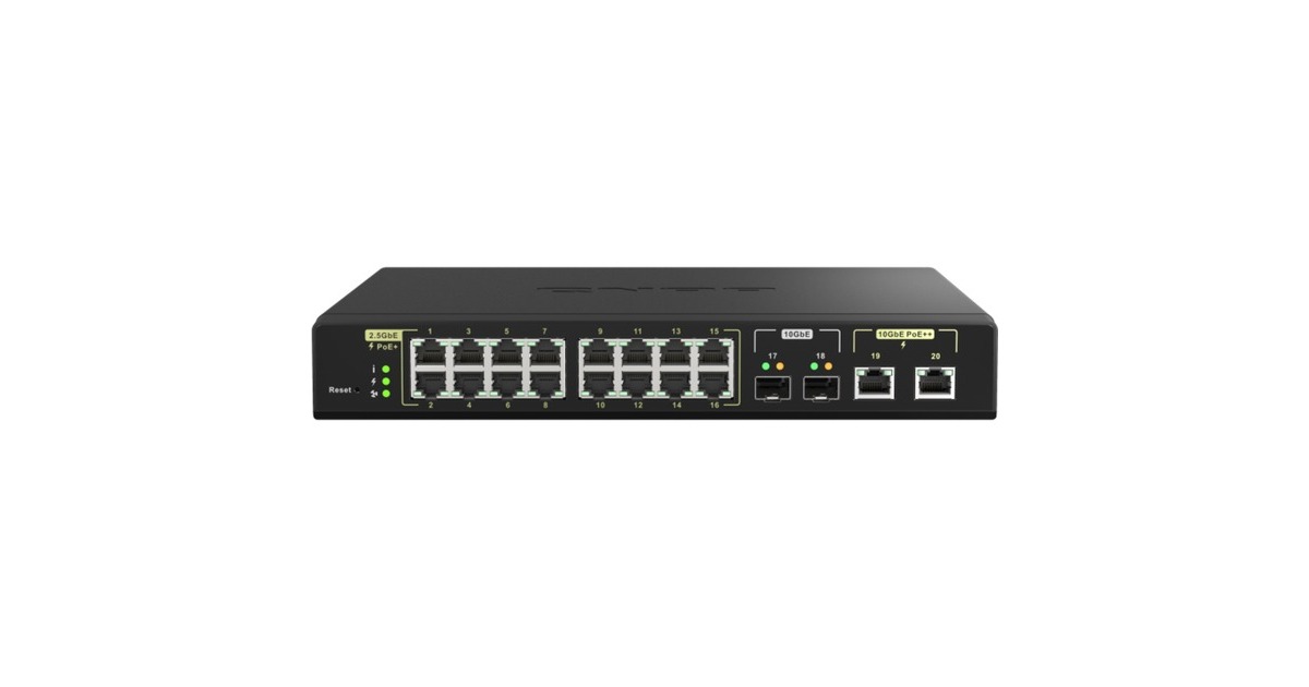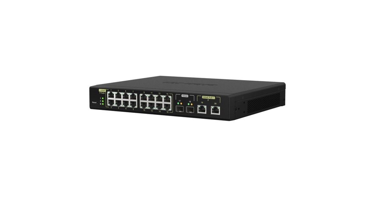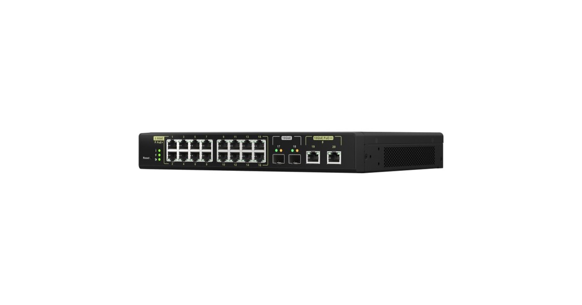 Der QNAP QSW-M2116P-2T2S ist ein L2 PoE Managed Switch mit sechzehn 30 Watt 2,5GbE PoE+ Ports, zwei 90 Watt 10GbE PoE++ Ports. Mit einem Gesamtleistungsbudget von 280 Watt und zwei 10GbE SFP+ Ports ermöglicht der QSW-M2116P-2T2S nicht nur eine High-Speed und High-Power PoE Netzwerkinfrastruktur für Wi-Fi 6 Access Points und Router, sondern bietet auch Backbone Netzwerk Uplink Funktionen. QSS, das QNAP Switch System mit benutzerfreundlicher Weboberfläche, hilft IT-Administratoren bei der effizienten Steuerung von Layer-2 und PoE Netzwerken, darunter drahtloser APs, IP-Kameras und Digital Signage, Core Switches und Servern. Mit dem QSW-M2116P-2T2S steht KMUs eine kostenoptimierte und zentral verwaltete LAN Bereitstellungslösung zur Verfügung.