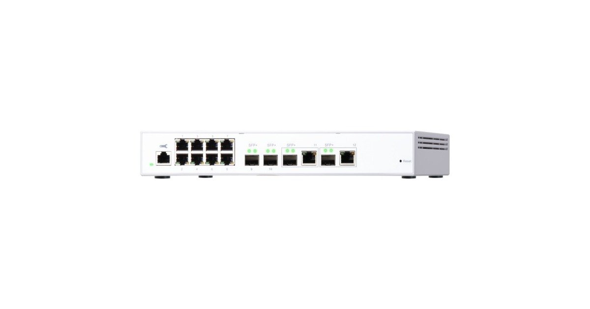 Der QSW-M408-2C ist ein Layer 2 Web Managed Switch, der mit vier 10GbE SFP+ Ports (mit zwei 10GbE SFP+/RJ45 Kombi-Ports) und acht Gigabit-Ports ausgestattet ist. Der QSW-M408-2C unterstützt Layer 2 Switching und Netzwerkmanagement über eine benutzerfreundliche Weboberfläche und bietet einen flexiblen Einsatz in einer hybriden High-Speed Infrastruktur sowie eine Netzwerkverwaltungslösung für Einsteiger, die keine IT-Fachleute sind. Der QSW-M408-2C ist kompatibel mit 10GbE und NBASE-T Technologien, die bis zu fünf Geschwindigkeiten (10G / 5G / 2,5G / 1G / 100M) unterstützen, um höhere Übertragungsgeschwindigkeiten mit vorhandenen Cat 5e und 6a Kabeln zu ermöglichen. Mit seiner hohen Leistung, den benutzerfreundlichen Verwaltungsfunktionen und der Schreibtischgröße ermöglicht Ihnen der QSW-M408-2C ein sofortiges Upgrade auf eine hybride High-Speed Netzwerkumgebung zu einem günstigen Preis, während gleichzeitig die Netzwerkbandbreite optimiert und die Sicherheit der Netzwerkwartung gewährleistet wird
