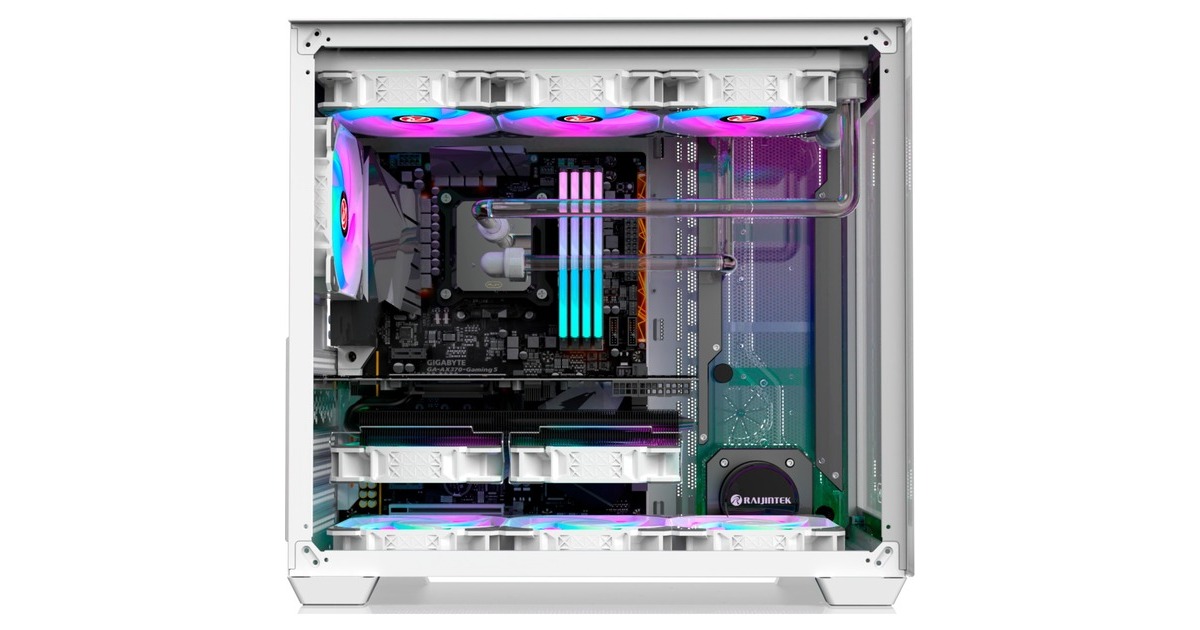 2x 140-mm- oder 3x 120-mm-Lüfter an der Oberseite einbaubar, 3x 120-mm-Lüfter an der Unterseite einbaubar, MB: 2x 140-mm- oder 3x 120-mm-Lüfter einbaubar, Seitenteil aus Tempered Glass (4 mm) |