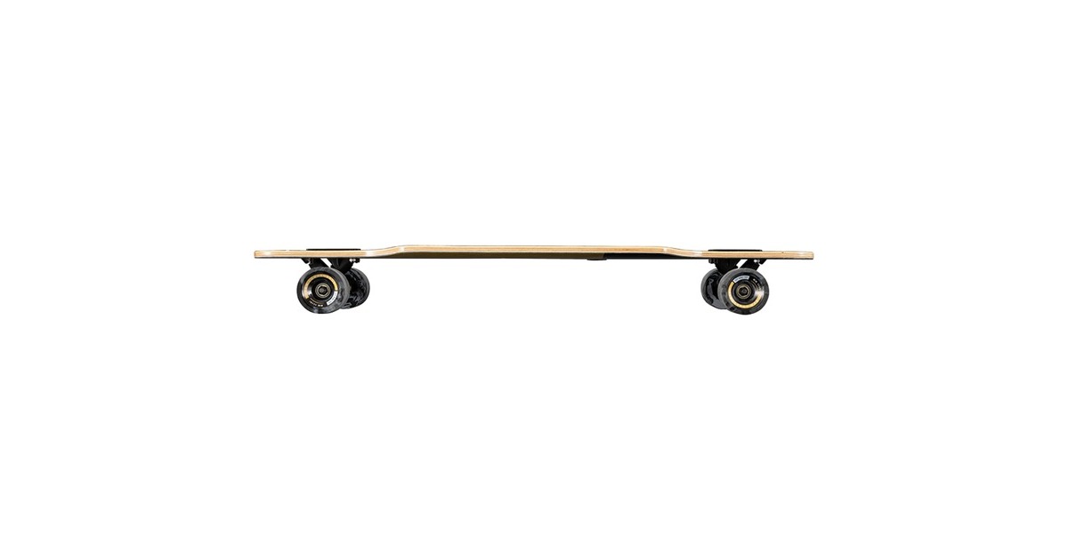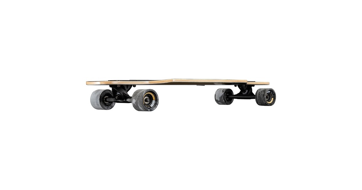 Deck aus 7-lagigem kanadischem Ahorn (86,4 x 22,2 cm), 7" UB-Achsen aus strapazierfähigem Aluminium mit PU-Lenkgummis (SHR 90A), 70 x 51 mm Polyurethane-Rollen (78A) mit Marmor-Effekt und angeschliffener Lauffläche, ABEC-9 Kugellager aus Chromstahl, Griptape mit Ausschnitt, bedruckt (80S) |