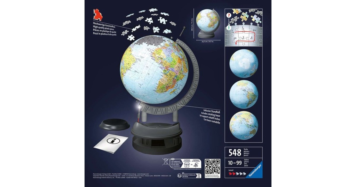 540 nummerierte Kunststoff-Puzzleteile, Aufsteller, Drehfuß, LED-Beleuchtung, Anleitung |