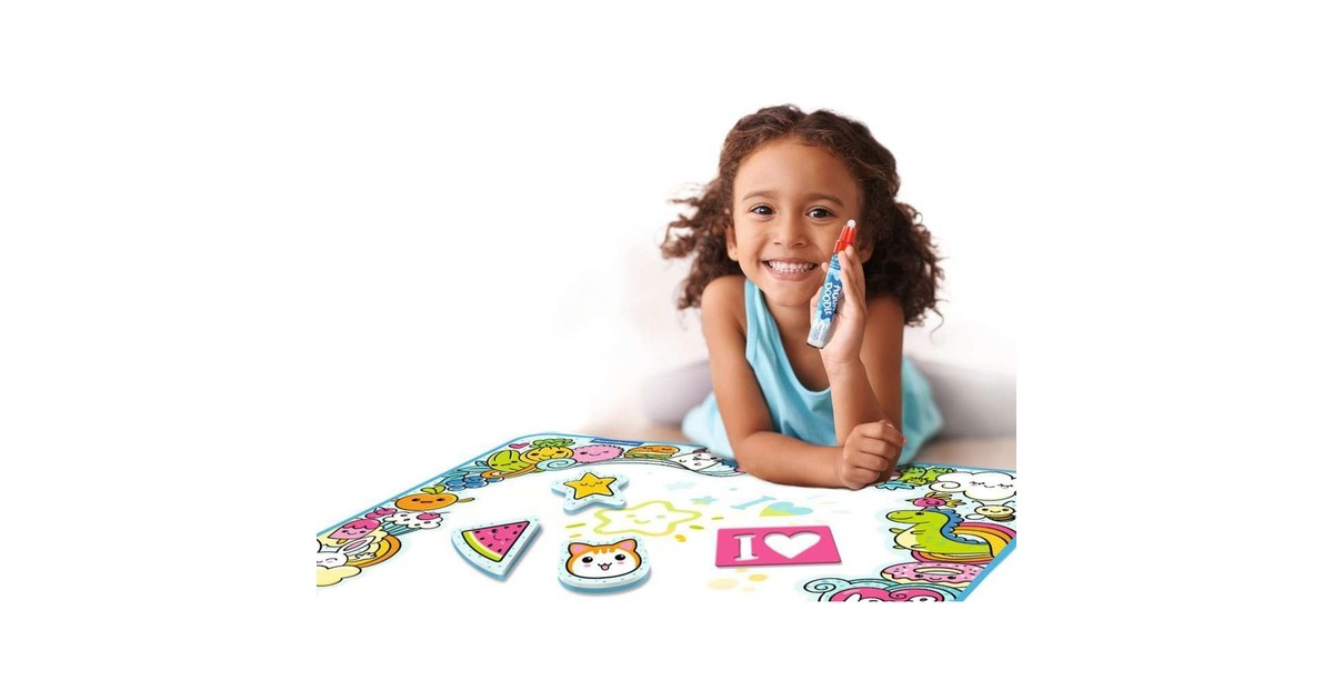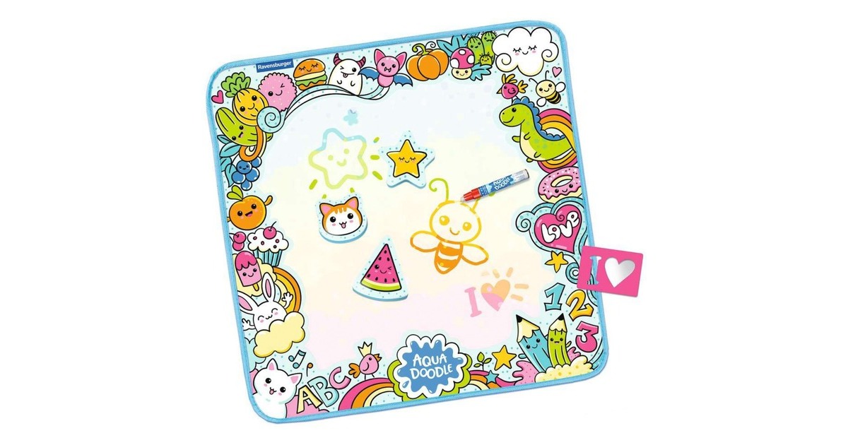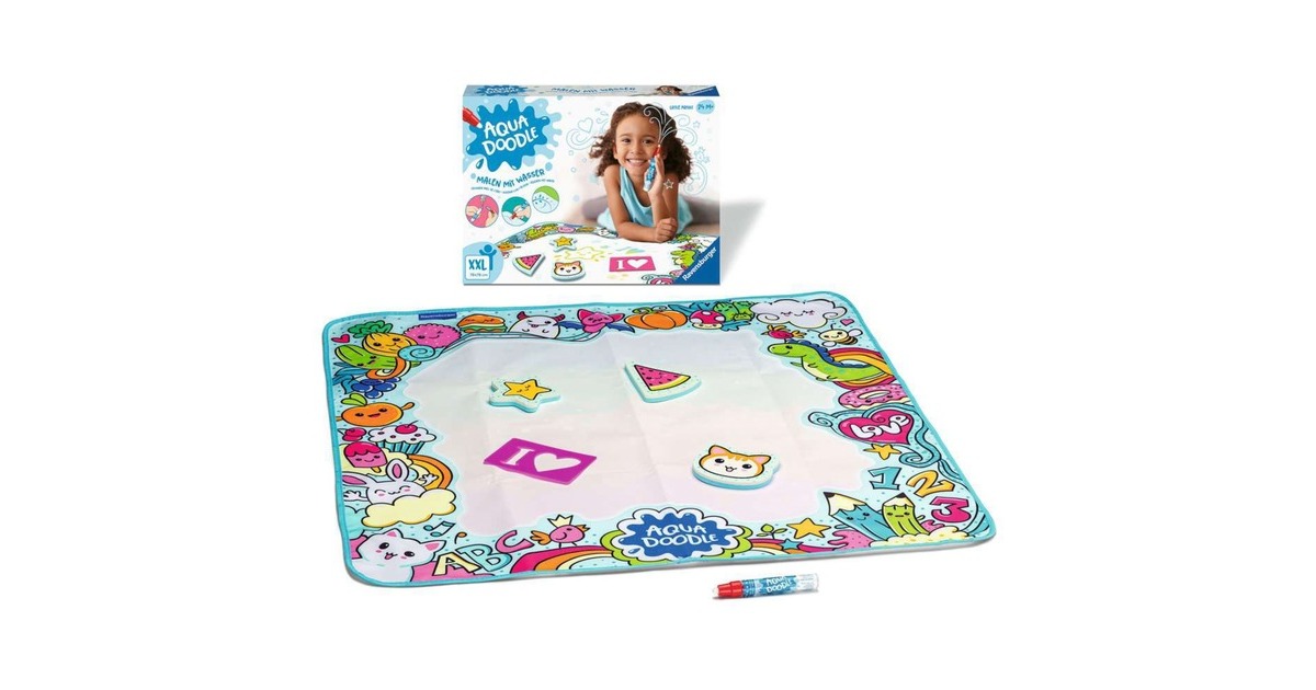 Aquadoodle Little Artist steht für kreativen ersten Malspaß - ganz ohne Flecken! Mit Leitungswasser lassen sich künstlerisch-bunte Striche auf die Matte zaubern. Viele kindgerechte Motive rings um die Matte sowie vier verschiedene Schablonen regen zu immer neuen Malversuchen an. Trocknet das Wasser, verschwindet alles und der Spaß beginnt von Neuem. Aquadoodle von Ravensburger besticht durch Qualität in Funktion und Verarbeitung - für sicheren und langlebigen Malspaß.