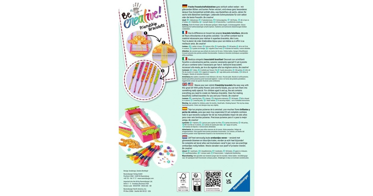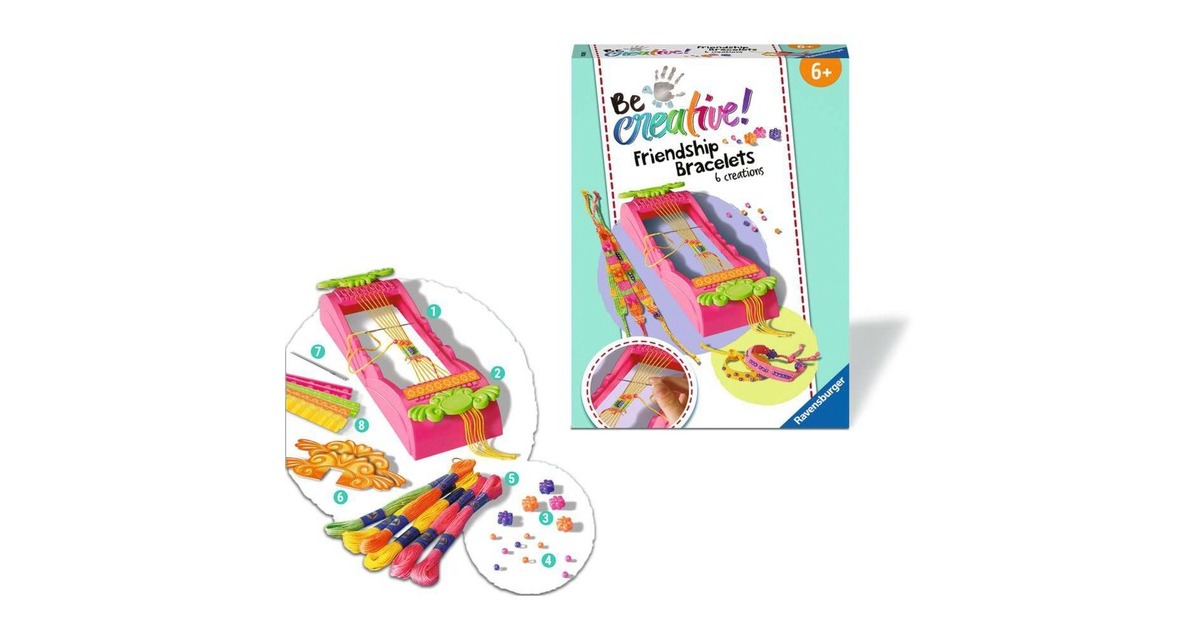 Mit dem Ravensburger BeCreative Set Freundschaftsbändchen können Kinder ab 8 Jahren Armbänder für sich selbst oder Freunde knüpfen. Mit Hilfe des Webrahmens zum Knüpfen entstehen ganz einfach sechs verschiedene Freundschaftsbändchen, die mit bunten Perlen und glänzenden Blüten verziert werden können. Die beigelegte Anleitung ermöglicht den Jungen und Mädchen verschiedene Arten des Knüpfens zu erlernen und auszuprobieren. Der Kreativität sind dabei keine Grenzen gesetzt.Art.-Nr.: 100004910