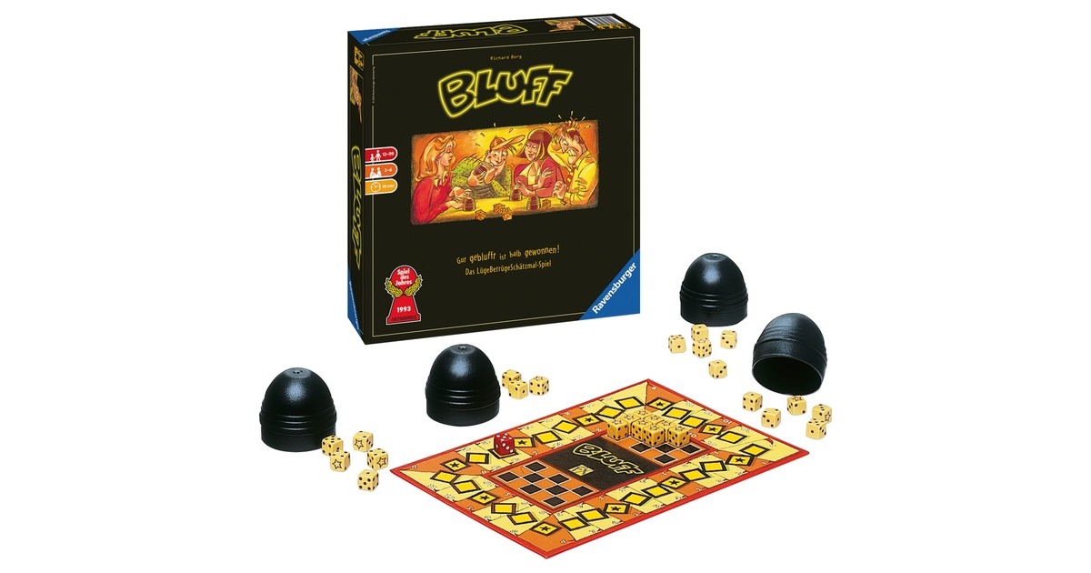 Gut geblufft ist halb gewonnen! Bluff, das LügeBetrügeSchätzmal-Spiel. Würfel und ein Becher für jeden. Shake it! Ein abschätzender Blick, eine schnelle Hochrechnung - wie viel Fünfer sind wohl im Spiel!? Die Wetten steigen ... Wer legt hier wen rein!? Wer verliert als Erster die Nerven und fordert: Hoch die Becher? Jetzt sehen's alle: Einer hat sich verzockt - und verliert so manchen Würfel. So bleiben nach und nach immer mehr Würfel - und Spieler - auf der Strecke. Nur der coolste Bluffer hält durch.Art.-Nr.: 1187110| Altersempfehlung | ab 12 Jahren |