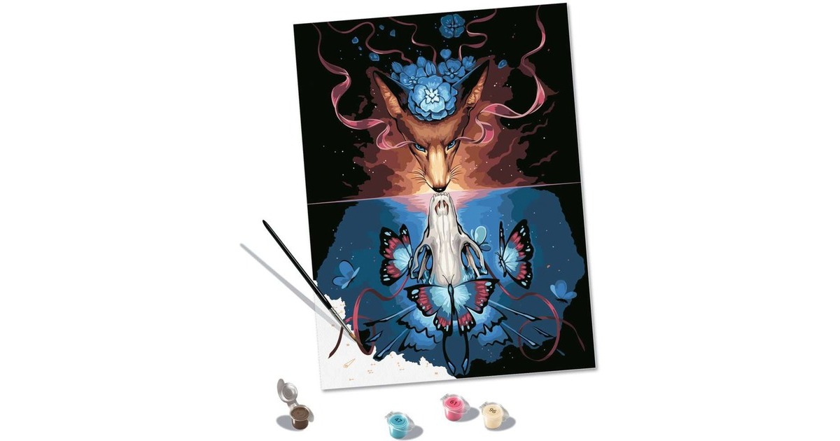 CreArt - das ist Malen nach Zahlen für Jugendliche und Erwachsene aus dem Hause Ravensburger. Jedes Set enthält alles, was zum Malen benötigt wird. Es ist kein Mischen der Farben notwendig. Motivlinien sind aufgedruckt und können einfach mit den Acrylfarben ausgemalt werden. Das ermöglicht schnelle Erfolgserlebnisse und lässt einen dekorativen Wandschmuck entstehen. Hinzu kommt die tolle Auswahl an Motiven in verschiedenen Größen. Mit diesem Set entsteht ein mystisches Bild mit zwei Motiven in der Größe 40 x 30 Zentimeter. Art.-Nr.: 100019839