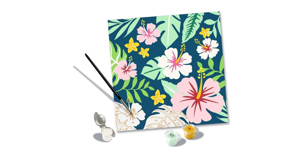 CreArt - das ist Malen nach Zahlen für Jugendliche und Erwachsene aus dem Hause Ravensburger. Jedes Set enthält alles, was zum Malen benötigt wird. Es ist kein Mischen der Farben notwendig. Motivlinien sind aufgedruckt und können einfach mit den Acrylfarben ausgemalt werden. Das ermöglicht schnelle Erfolgserlebnisse und lässt einen dekorativen Wandschmuck entstehen. Hinzu kommt die tolle Auswahl an Motiven in verschiedenen Größen. Mit diesem Set entsteht ein verspieltes Pflanzenmotiv mit Hibiskusblüten in der Größe 20 x 20 Zentimeter.Art.-Nr.: 100038893
