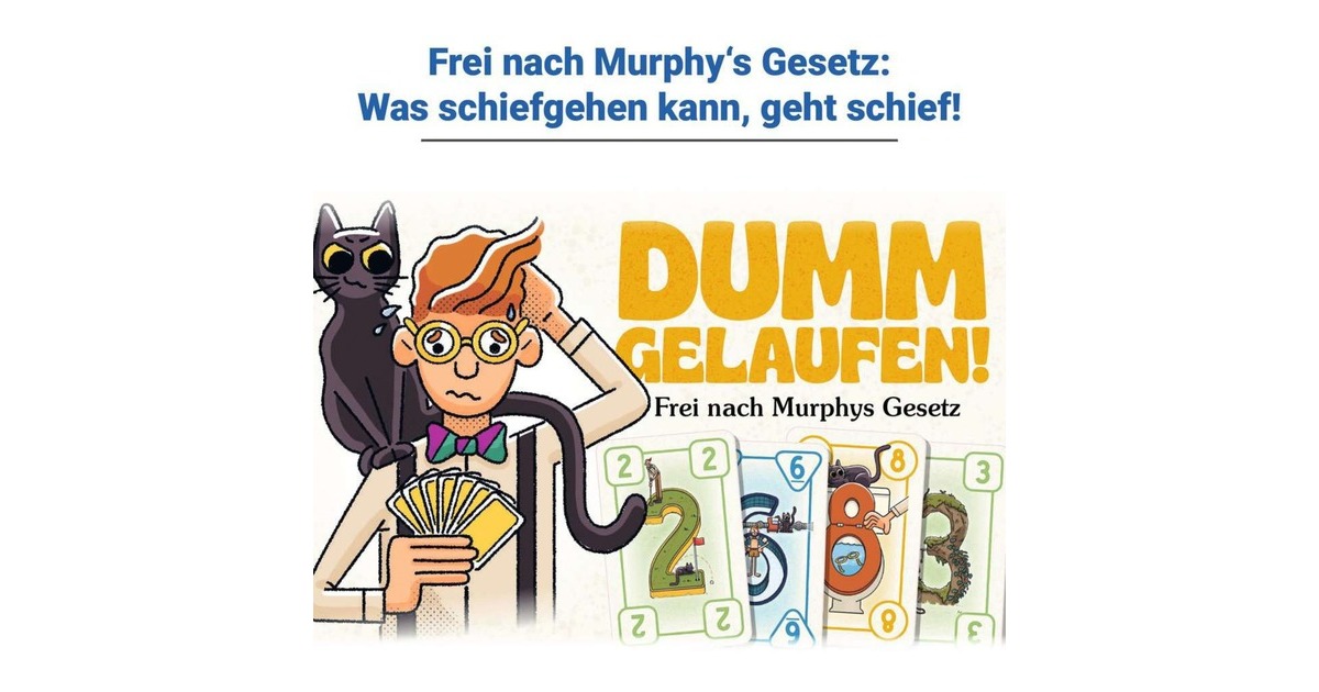 Das Kartenspiel Dumm Gelaufen! folgt stets Murphys Gesetz: Was schiefgehen kann, geht schief! Ziel ist es, möglichst schnell die Aufträge auf den Murphykarten zu erfüllen. Mal sind grüne Karten gefragt, mal solche mit der Zahl 5. Doch wer glaubt, das sei einfach, wird eines Besseren belehrt. Karten passend gesammelt? Murphyaufgabe fast gelöst? Dem Ziel zum Greifen nahe? Jammerschade nur, dass jemand anders nun doch schneller fertig war - dumm gelaufen!Art.-Nr.: 1894578