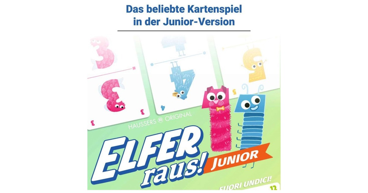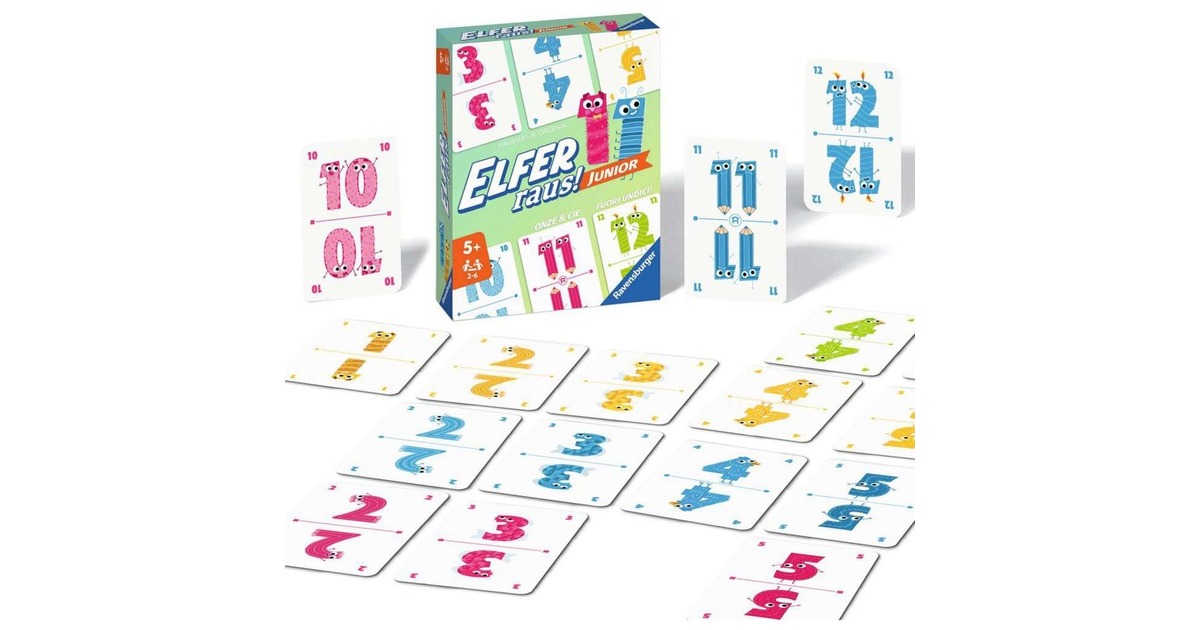 Mit dem neuen Einstiegsspiel wird der beliebte Kartenspiel-Klassiker Elfer raus! auch für jüngere Kinder zu einem tollen Erlebnis. Und ganz nebenbei üben die Kinder ab 5 jahren spielerisch den Zahlenraum von 1 bis 20. Lustig animierte Zahlen steigern den Spielspaß und helfen beim Lernen. Und wer bei der Juniorvariante schon Profi ist, wechselt ganz einfach zur klassischen Variante von Elfer raus!, die mit dem Juniorspiel ebenfalls spielbar ist.Art.-Nr.: 1894581