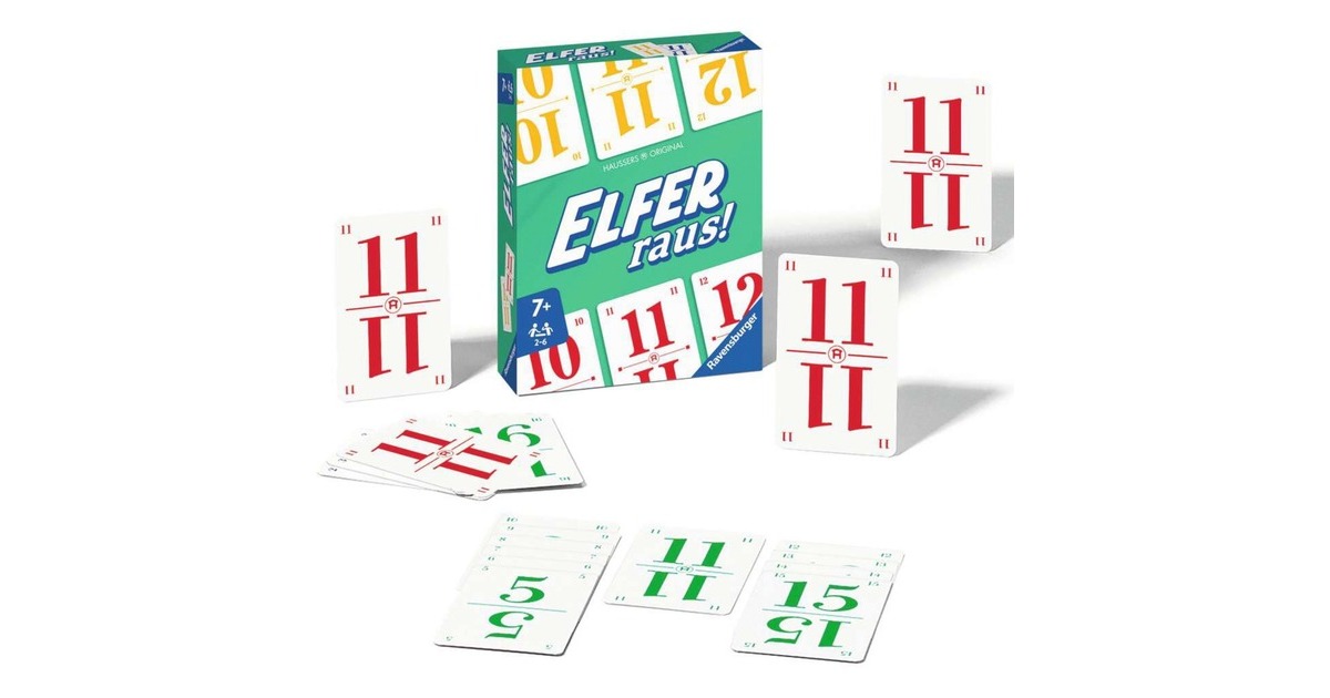 Das seit 1925 beliebte und unterhaltsame Kartenspiel mit einfachen Regeln für die ganze Familie. Zahlenkarten clever anlegen, die anderen Mitspielenden blockieren und dann plötzlich Schluss machen: Das ist Elfer raus - Spielspaß pur seit Generationen!