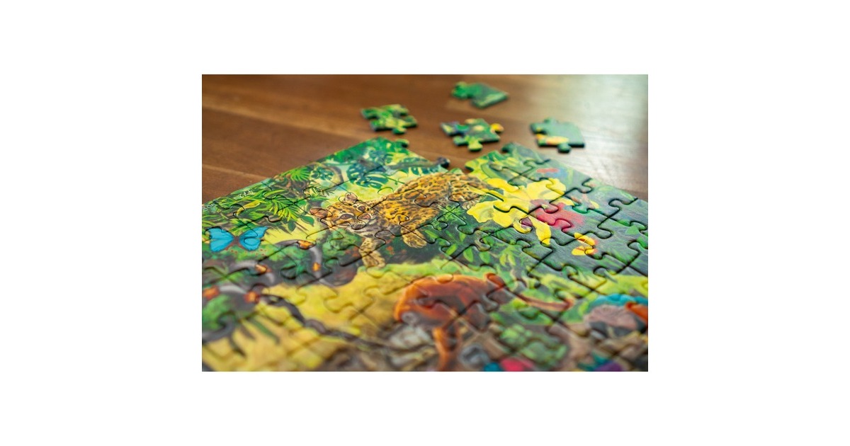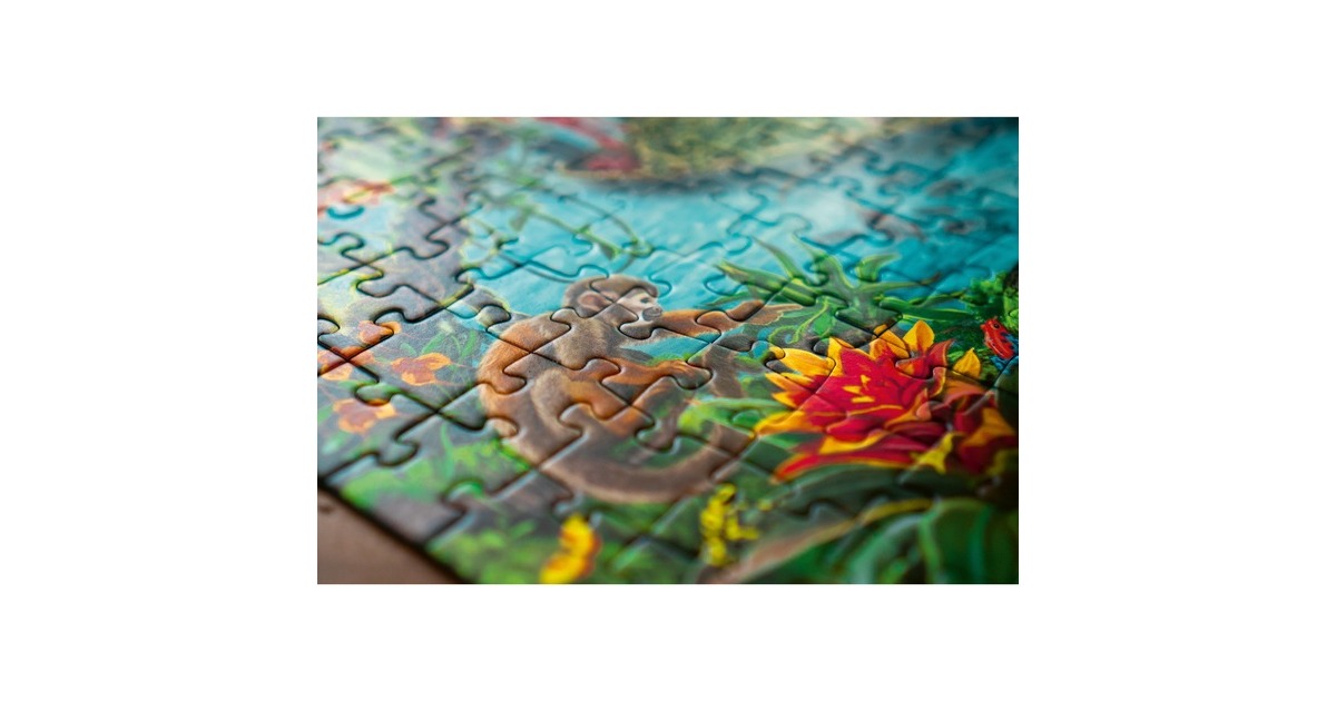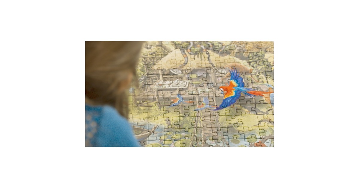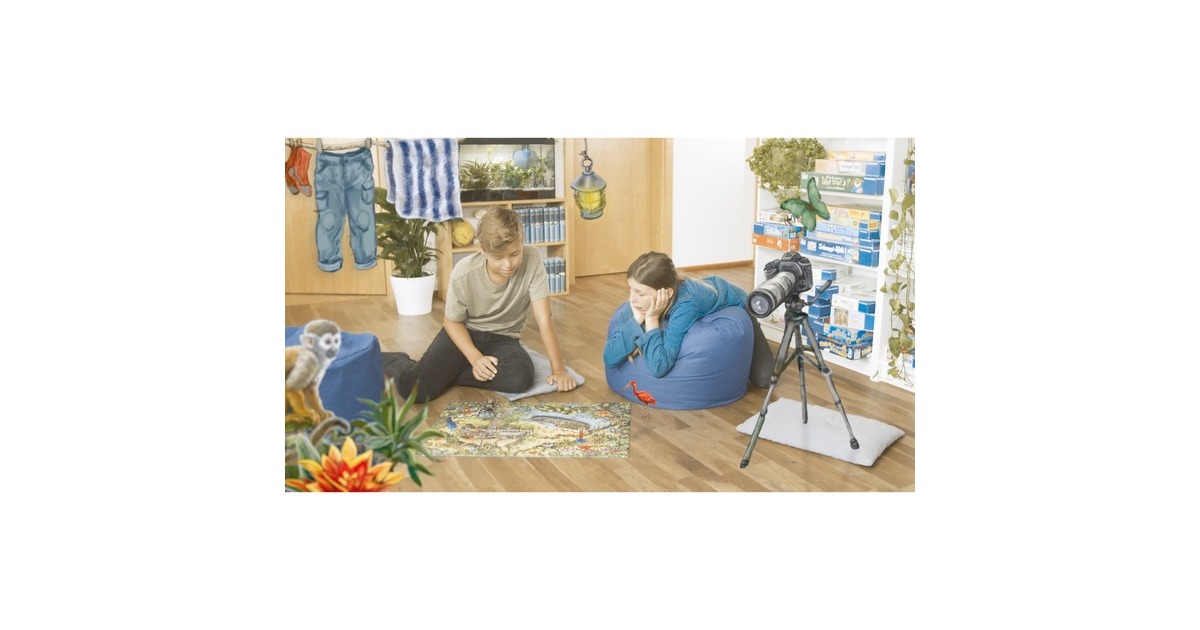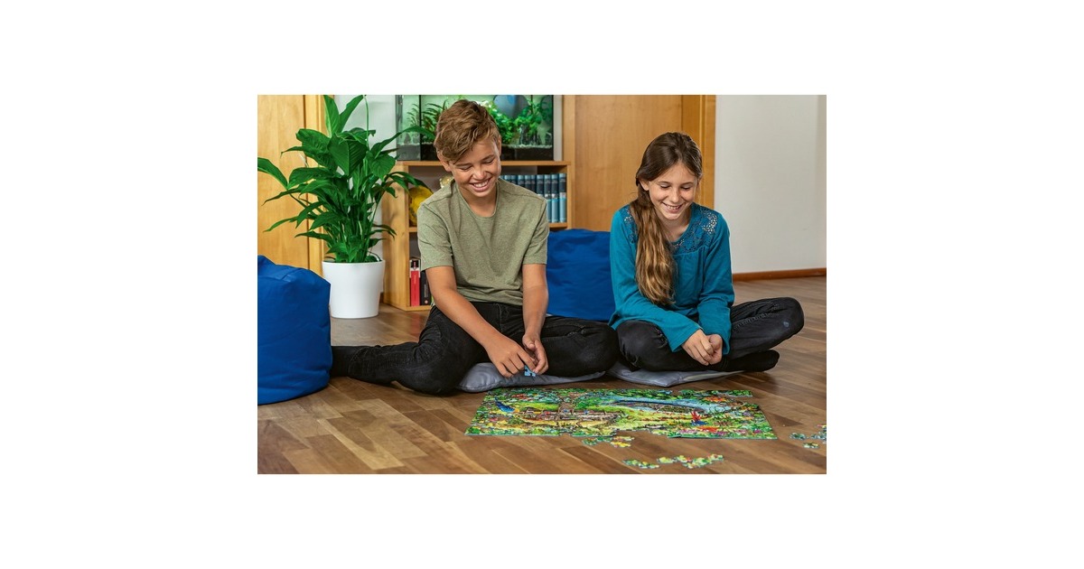 Im Ravensburger EXIT Puzzle Kids tauchen puzzle- und rätselbegeisterte Mädchen und Jungen in das Dickicht des Urwalds und erforschen Puzzleteil für Puzzleteil die Geheimnisse des Dschungels. Nun gilt es alle Rätsel zu lösen und den EXIT zu finden! Exit Rooms sind der Live-Game-Trend und sorgen längst weltweit für Begeisterung. Die Idee: Mehrere Spieler lassen sich in einen Raum einsperren, um eine Mission zu erfüllen. Dafür müssen sie Rätsel lösen, die im Raum versteckt sind. Dieses Spielprinzip bildet die Grundlage für eine völlig neue Variante des Puzzles: das EXIT PUZZLE. Sind alle 368 Teile an ihrem Platz, sind Kombinationsgabe, Fantasie und Intuition gefragt! Genau wie die Live-Gamer in den Exit Rooms tauchen auch die Exit-Puzzler in eine spannende Story ein, die sie in mysteriöse Welten entführt. Doch zum Helden der Geschichte kann nur werden, wer – Puzzlestück für Puzzlestück – auch das letzte große Rätsel knackt und somit seinen Exit findet.Art.-Nr.: 1733471