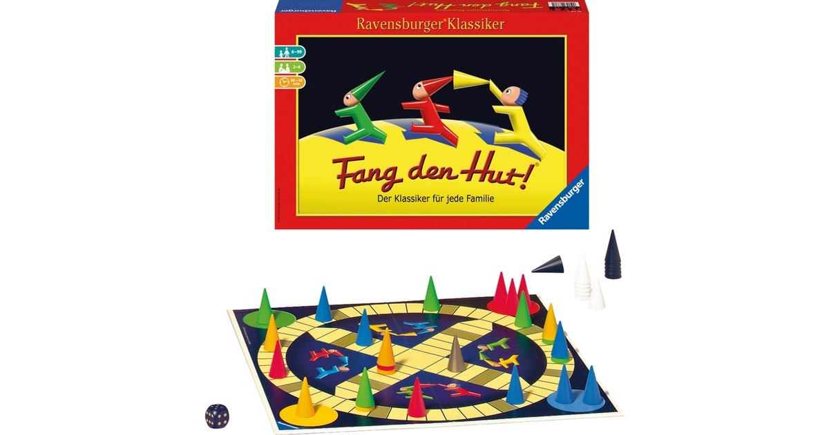 Angreifen oder lieber abhauen? Nicht jeder, der wagt, gewinnt auch. Und wer auf der Hut ist, ist noch lange nicht sicher. Viele fremde Hütchen schnappen, ohne selbst erwischt zu werden: Da geht die Taktik ohne Würfelglück selten auf. Ein verzwicktes Spiel voller Spannung und Zufälle bei allen fünf Spielregeln.Art.-Nr.: 1329646