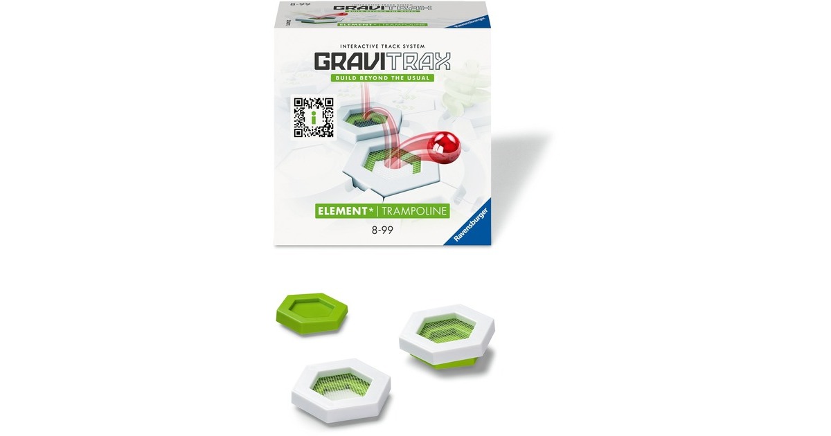 GraviTrax - das innovative Baukastensystem für anspruchsvolle Kugelbahnen. Aus einer Vielzahl an verschiedenen Bausteinen und Schienen lassen sich bei geschickter Nutzung der physikalischen Gesetze aktionsreiche Streckenverläufe planen, ausprobieren und realisieren. Mit den zahlreichen Erweiterungs-Sets wird das freie Bauen und Konstruieren des innovativen Bausystems GraviTrax jedes Mal aufs Neue noch interessanter und spannender! Mehr Möglichkeiten - mehr Spaß! Mit dem Element kommt jede Menge zusätzliche Bewegung in die GraviTrax-Bahn. Fällt eine Kugel auf das Trampolin, hüpft sie direkt auf eine höhere Ebene. Wie weit und wie hoch springt die Kugel durch die Bahn? Dieses Element bringt, wenn es mit einem Starter-Set kombiniert oder in eine bereits aufgebaute GraviTrax-Welt integriert wird, ganz neuen Schwung und viele neue Möglichkeiten.Art.-Nr.: 1913126