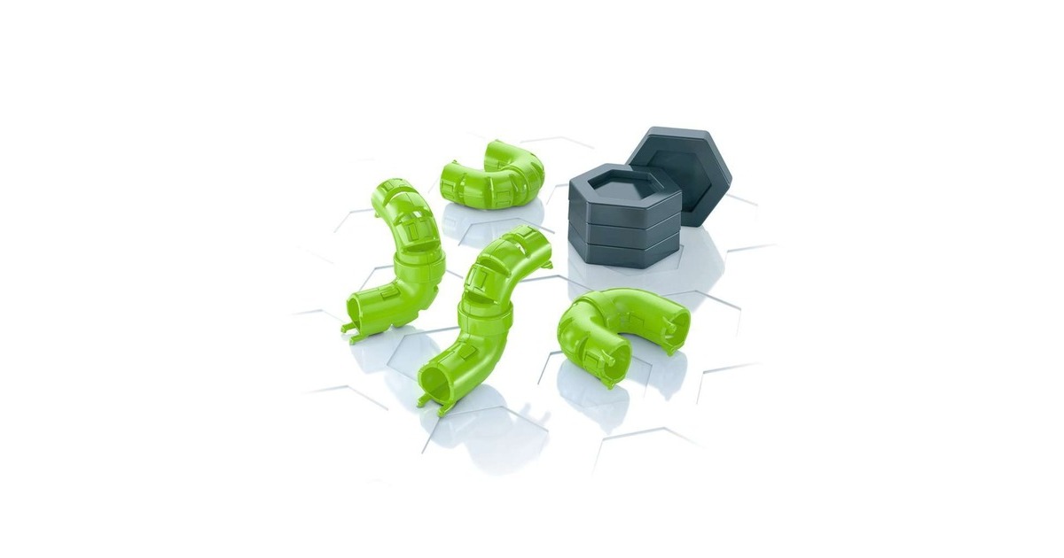 GraviTrax - das innovative Baukastensystem für anspruchsvolle Kugelbahnen. Aus einer Vielzahl an verschiedenen Bausteinen und Schienen lassen sich bei geschickter Nutzung der physikalischen Gesetze aktionsreiche Streckenverläufe planen, ausprobieren und realisieren. Mit den zahlreichen Erweiterungs-Sets wird das freie Bauen und Konstruieren des innovativen Bausystems GraviTrax jedes Mal aufs Neue noch interessanter und spannender! Mehr Möglichkeiten - mehr Spaß! Diese Erweiterung besteht aus einer flexiblen Röhre, mit der unterschiedliche Höhen miteinander verbunden werden können. Die FlexTube kann in 60-Grad-Schritten in die unterschiedlichsten Formen gebracht werden. In Verbindung mit einem GraviTrax Starter-Set lassen sich Geschwindigkeiten so noch besser so kontrollieren. Außerdem sind vier Höhensteine enthalten.Art.-Nr.: 1716126