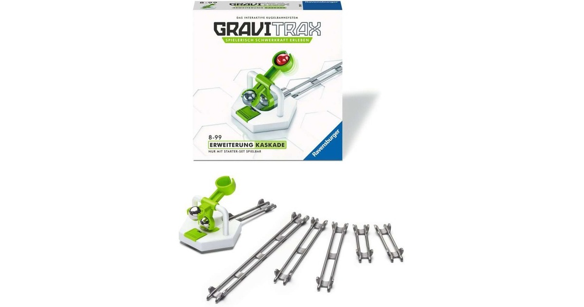 GraviTrax - das innovative Baukastensystem für anspruchsvolle Kugelbahnen. Aus einer Vielzahl an verschiedenen Bausteinen und Schienen lassen sich bei geschickter Nutzung der physikalischen Gesetze aktionsreiche Streckenverläufe planen, ausprobieren und realisieren. Mit den zahlreichen Erweiterungs-Sets wird das freie Bauen und Konstruieren des innovativen Bausystems GraviTrax jedes Mal aufs Neue noch interessanter und spannender! Mehr Möglichkeiten - mehr Spaß! Diese Erweiterung hebt die Kugel auf ein höheres Level und ermöglicht so, noch mehr Strecke auf der Bahn zurückzulegen.Art.-Nr.: 1435061