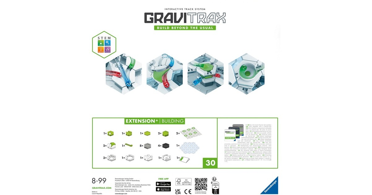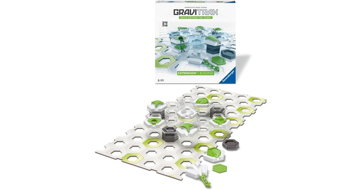 GraviTrax - das innovative Baukastensystem für anspruchsvolle Kugelbahnen. Aus einer Vielzahl an verschiedenen Bausteinen und Schienen lassen sich bei geschickter Nutzung der physikalischen Gesetze aktionsreiche Streckenverläufe planen, ausprobieren und realisieren. Mit den zahlreichen Erweiterungs-Sets wird das freie Bauen und Konstruieren des innovativen Bausystems GraviTrax jedes Mal aufs Neue noch interessanter und spannender! Mehr Möglichkeiten - mehr Spaß! Diese Erweiterung zu einem bereits bestehenden Starter-Set enthält jede Menge Teile wie Bodenplatten, Höhensteine und vieles mehr zum Vergrößern der Bahn. Das bringt noch mehr Flexibilität in die GraviTrax-Welt!Art.-Nr.: 1913129