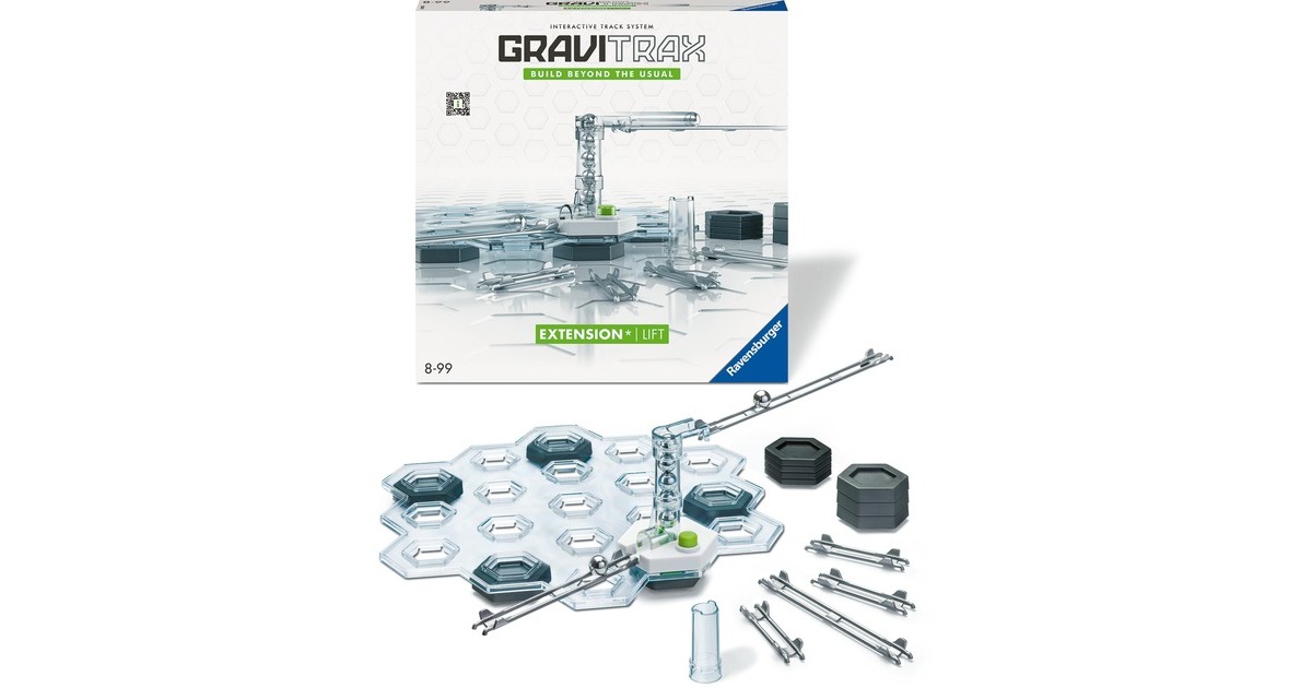GraviTrax - das innovative Baukastensystem für anspruchsvolle Kugelbahnen. Aus einer Vielzahl an verschiedenen Bausteinen und Schienen lassen sich bei geschickter Nutzung der physikalischen Gesetze aktionsreiche Streckenverläufe planen, ausprobieren und realisieren. Mit den zahlreichen Erweiterungs-Sets wird das freie Bauen und Konstruieren des innovativen Bausystems GraviTrax jedes Mal aufs Neue noch interessanter und spannender! Mehr Möglichkeiten - mehr Spaß! Diese Erweiterung zu einem bereits bestehenden Starter-Set enthält viele verschiedene Basisteile und sieben Kugeln. Das Lift-Element hebt Kugeln flexibel auf neue Ebenen. Das bringt noch mehr Flexibilität in die GraviTrax-Welt!Art.-Nr.: 1913138