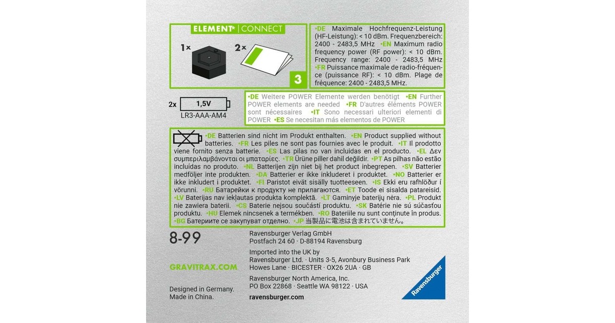 GraviTrax - das innovative Baukastensystem für anspruchsvolle Kugelbahnen. Aus einer Vielzahl an verschiedenen Bausteinen und Schienen lassen sich bei geschickter Nutzung der physikalischen Gesetze aktionsreiche Streckenverläufe planen, ausprobieren und realisieren. Mit den zahlreichen Erweiterungs-Sets wird das freie Bauen und Konstruieren des innovativen Bausystems GraviTrax jedes Mal aufs Neue noch interessanter und spannender! Mehr Möglichkeiten - mehr Spaß! Durch das Power Element Connect kann eine Kugelbahn digital gesteuert werden: Einfach die GraviTrax Power-App nutzen und auf Funktionen wie Fernsteuerung, Programmierung oder Zeitmessung zugreifen. Art.-Nr.: 1913198