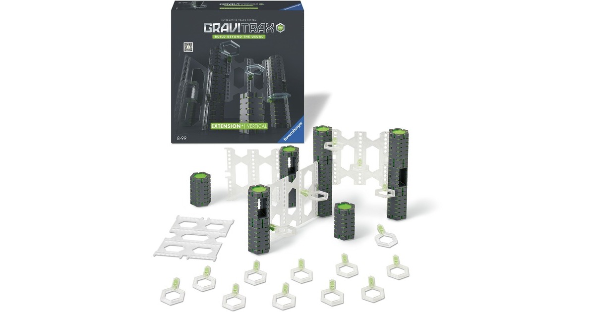 GraviTrax - das innovative Baukastensystem für anspruchsvolle Kugelbahnen. Aus einer Vielzahl an verschiedenen Bausteinen und Schienen lassen sich bei geschickter Nutzung der physikalischen Gesetze aktionsreiche Streckenverläufe planen, ausprobieren und realisieren. Mit den zahlreichen Erweiterungs-Sets wird das freie Bauen und Konstruieren des innovativen Bausystems GraviTrax jedes Mal aufs Neue noch interessanter und spannender! Mehr Möglichkeiten - mehr Spaß! Diese Erweiterung der PRO-Serie zu einem bereits bestehenden Starter-Set enthält verschiedene Bauteile zum Bauen in die Höhe. Das bringt noch mehr Flexibilität in die GraviTrax-Welt!Art.-Nr.: 1913149