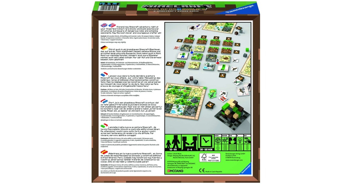 Das weltbekannte Videospiel Minecraft kommt in die analoge Welt: Dieses Brettspiel bringt die Welt von Minecraft auf den Wohnzimmertisch. Erkunde diese Welt, schnappe Deinen Mitspielern die Blöcke weg und baue immer neue, eindrucksvolle Gebäude. Wage Dich in finstere Höhlen und stelle Dich gefährlichen Monstern! Nur mit Mut und Einfallsreichtum kann man dieses Spiel gewinnen.Art.-Nr.: 1545858