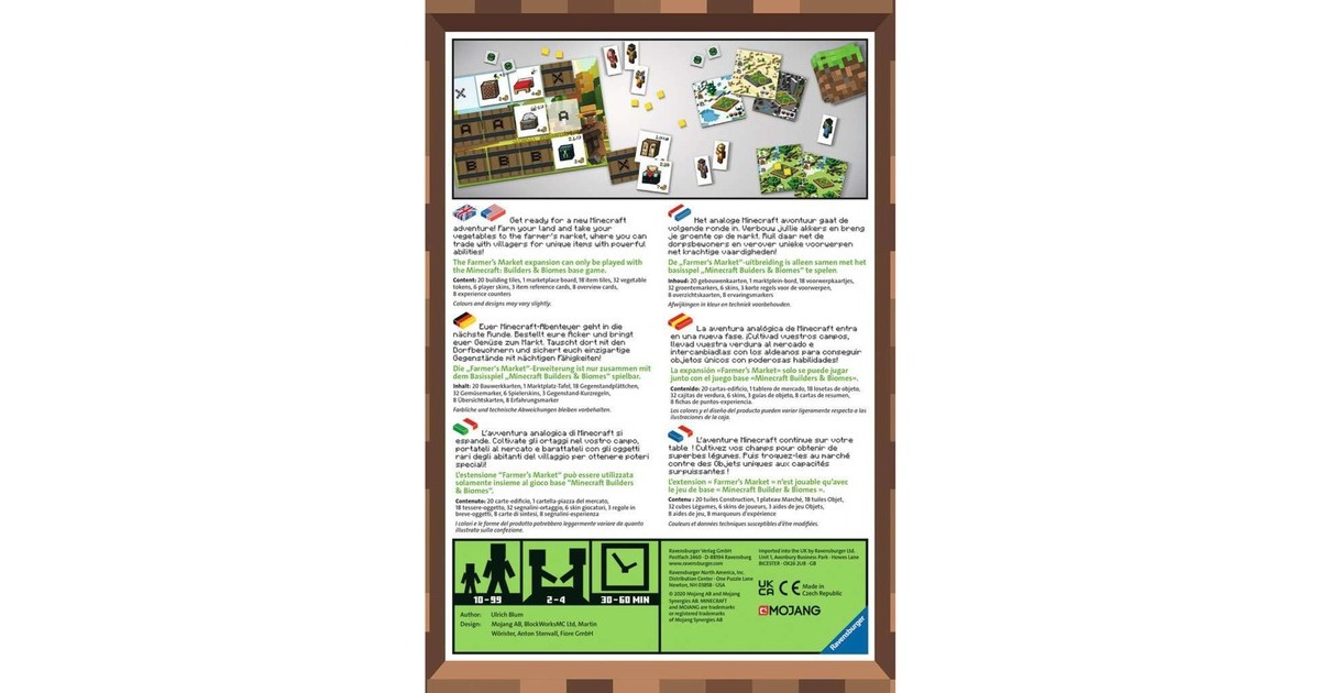 Die Erweiterung zum erfolgreichen Brettspiel "Minecraft Builders & Biomes" stellt euch vor zusätzliche Herausforderungen, bietet aber auch neue Chancen zu punkten! Das Spiel für Fans und solche, die es werden wollen, wird dabei um neue spannende Elemente erweitert. Mehr Aktionsmöglichkeiten und viel zusätzliches Material liefern euch noch mehr Abwechslung und Spielspaß. Wichtig: Die Erweiterung kann nur zusammen mit dem Grundspiel "Minecraft Builders & Biomes" gespielt werden.Art.-Nr.: 1629012