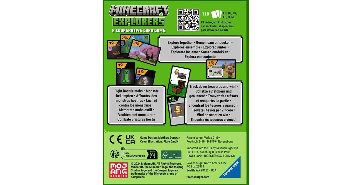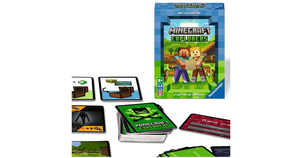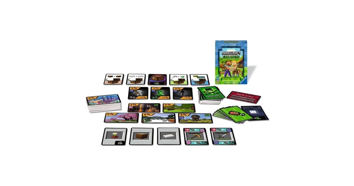 "Minecraft Explorers" ist ein kooperatives Kartenspiel von Ravensburger in der Welt von Minecraft. Gemeinsam werden hier malerische Landschaften aus dem Videospiel erkundet und verborgene Schätze gesucht. Dabei können Werkzeuge und limitierte Aktionen genutzt werden. Doch Achtung: Die Monster wie Zombie, Creeper und Enderman sind auch mit dabei - und sie müssen auf dem Weg zum Schatz aus dem Weg geräumt werden! Ein toller Spaß für Minecraft-Fans.Art.-Nr.: 100039153