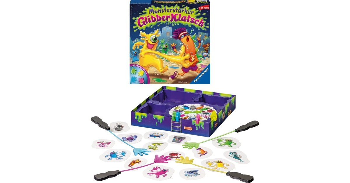 Alarm in Monstercity – die frechen Glibbermonster sind los! Sie machen sich einen Spaß daraus, die Bewohner von Monstercity mit ihren klebrigen Glibberhänden blitzschnell abzuklatschen. Wer hat am häufigsten einen an der Klatsche?Art.-Nr.: 1405031