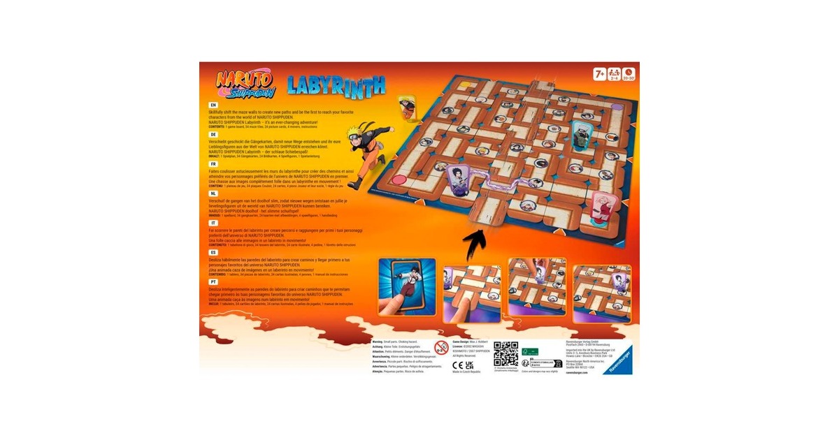 Löse das Labyrinth - jetzt mit den Lieblings-Figuren aus der beliebten Serie Naruto Shippuden! Als Naruto, Sakura, Kakashi und Co. geht es durch das Labyrinth, dessen Wände und Gänge sich ständig bewegen. Wer schafft es mit Naruto und seinen Freunden, die Gänge so zu verschieben, dass neue Wege entstehen, so dass die anderen Charaktere aus dem Labyrinth zu befreit werden können? Einfach zu spielen, aber immer wieder neu und spannend: Labyrinth ist ein aufregender Schiebespaß.Art.-Nr.: 1912817