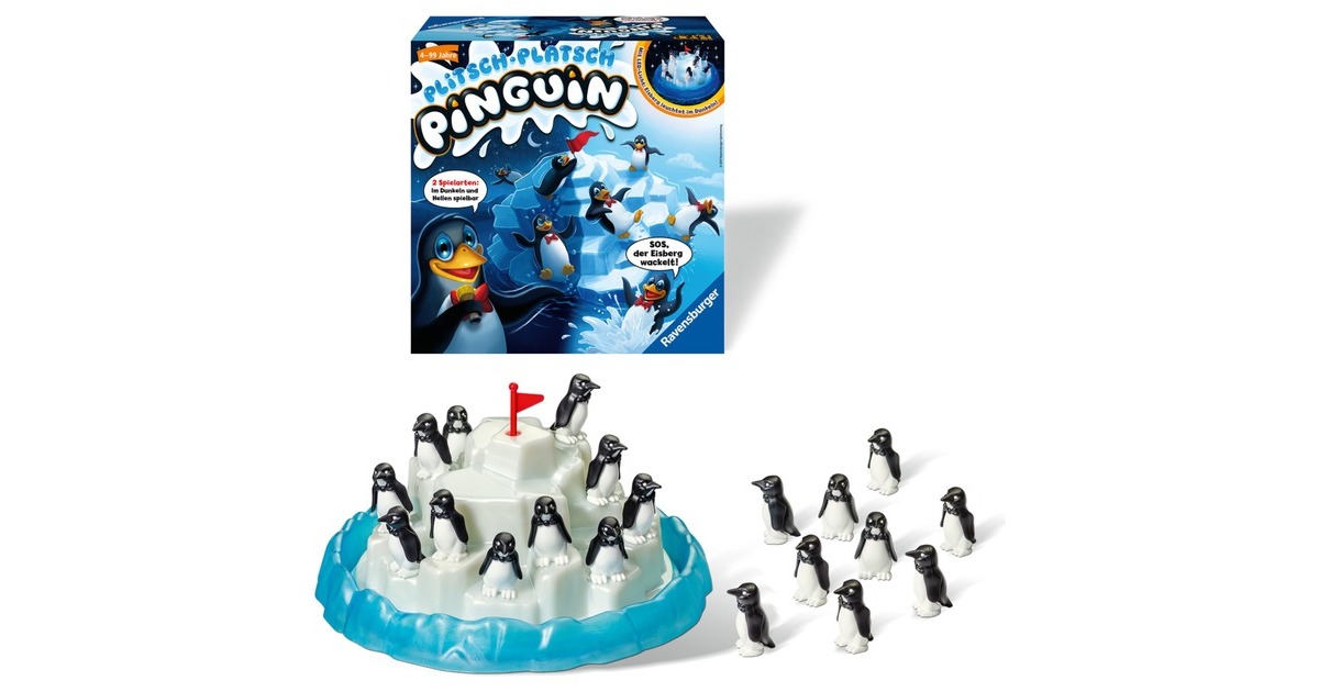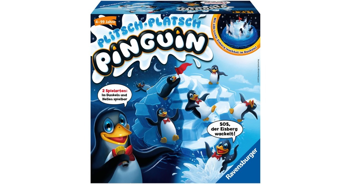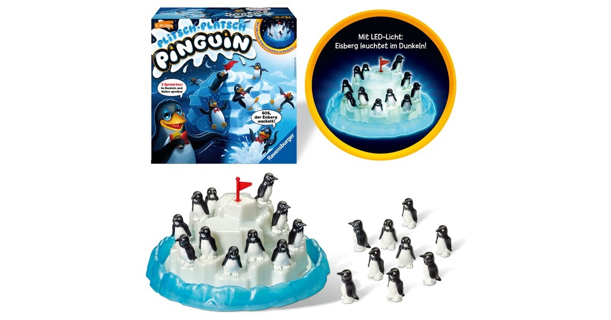 Erlebe jetzt noch mehr Spaß und Spannung, indem du deine Pinguine auch im Dunklen geschickt auf dem hell leuchtenden Eisberg platzierst. Wer als Erster alle seine Pinguine auf dem wackligen Eisberg unterbringt, gewinnt. Plitsch-Platsch Pinguni besitzt auch eine einfache Spielvariante für Kinder ab 4 Jahren.Art.-Nr.: 1345739