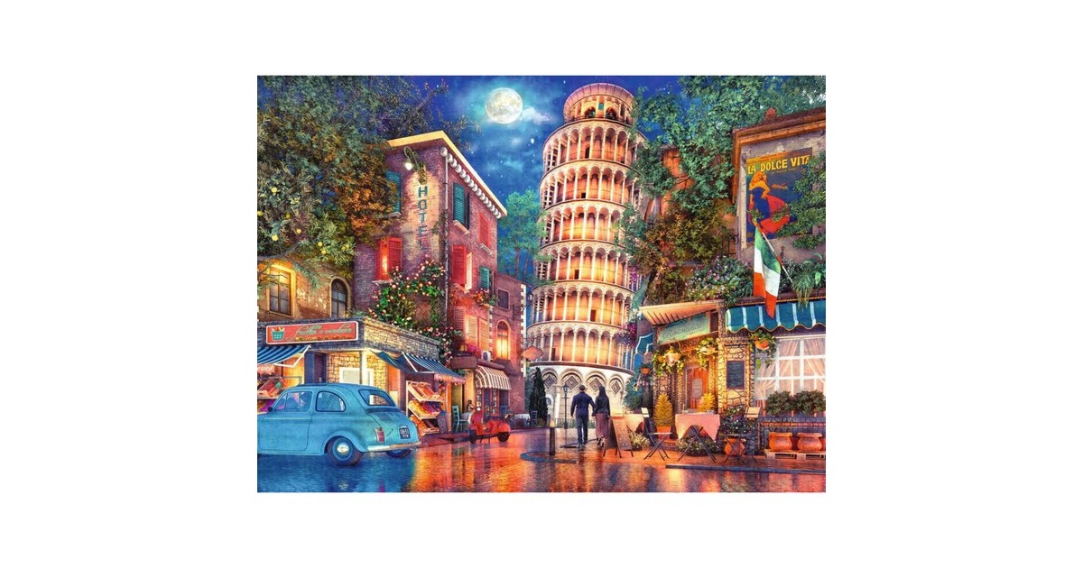 Puzzles von Ravensburger bringen Puzzlespaß in Premiumqualität: Sie erfüllen die höchsten Ansprüche an Material, Motiv und Design - und dies mit einer riesigen Auswahl an Motiven, Formaten und Schwierigkeitsgraden. Hier findet jeder sein perfektes Puzzle: Vom Anfänger bis zum Profi. Dieses Puzzle mit 500 Teilen zeigt eine abendliche Straßenansicht von Pisa mit dem berühmten schiefen Turm.Art.-Nr.: 1895197