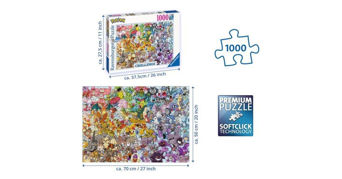 Fordern Sie sich selbst heraus und testen Sie unsere neuen, wimmeligen Challenge Puzzles in 1000 Teilen. Stellen Sie Ihre Geschicklichkeit, Konzentration und Ihr räumliches Denken auf die Probe. Erleben Sie ein unvergleichliches Puzzlevergnügen mit Ravensburger Qualitätsprodukten. Die einzigartigen Puzzleteile passen perfekt ineinander. Dank handgefertigter Stanzwerkzeuge ist die Formenvielfalt der Ravensburger Puzzleteile unübertroffen. Das ist die Ravensburger Leidenschaft für Qualität.Art.-Nr.: 1674237