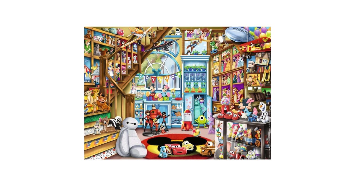 Ravensburger Puzzles bedeuten Puzzlespaß in Premium-Qualität. Für Anfänger, Fortgeschrittene oder Profis - hier ist für jeden Puzzleliebhaber die richtige Teilezahl und das passende Motiv dabei. Dieses Puzzle ab 14 Jahren zeigt einen Spielzeugladen, voll mit den beliebten Disney-Charakteren. Es hat 1000 Teile und aufgebaut eine Größe von etwa 70 x 50 cm.Art.-Nr.: 1919526
