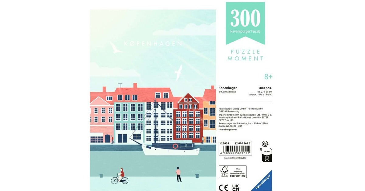 Die Ravensburger Puzzle aus der Serie Puzzle Moments sorgen für Entspannung im stressigen Alltag: Sie bieten mit trendigen Motiven und Premium-Qualität ein entspannendes Erlebnis für Zwischendurch - oder auch: Einen Moment für sich selbst. Es gibt sie in verschiedenen Größen - für Puzzle-Neulinge oder für erfahrene Puzzle-Fans, als ganz entspannten Einstieg oder als kleinere Herausforderung. Dieses Puzzle mit 300 Teilen ist 39 x 27 cm groß und zeigt ein stilisiertes Motiv der Altstadt von Kopenhagen.Art.-Nr.: 100039131