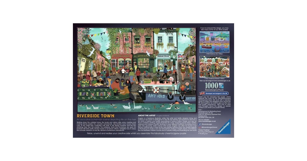Das Ravensburger Puzzle “Riverside Town” ist ein hochwertiges Produkt für Puzzle-Liebhaber ab 14 Jahren. Mit seinen 1000 Teilen bietet es stundenlangen Spielspaß und eine Herausforderung für puzzlebegeisterte Menschen. Das Puzzle hat die Maße von 70 x 50 cm und zeigt eine idyllische Stadt am Flussufer. Die Detailgenauigkeit und die lebendigen Farben machen das Puzzle zu einem visuellen Highlight. Es wurde mit großer Sorgfalt gefertigt, um ein qualitativ hochwertiges Puzzle-Erlebnis zu ermöglichen. Das Ravensburger Puzzle “Riverside Town” ist eine ideale Wahl für alle, die Freude am Puzzeln haben und nach einem ruhigen Zeitvertreib suchen.Art.-Nr.: 100037526