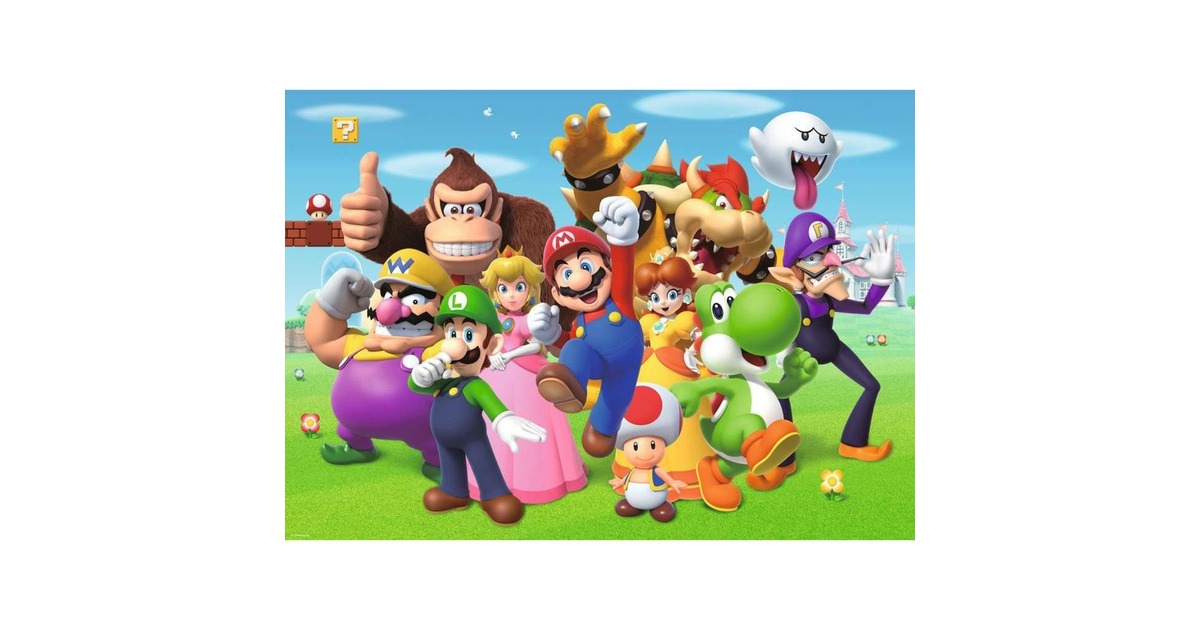 Dieses Puzzle ist auch für echte Fans von Super Mario eine Herausforderung. Es zeigt viele Charaktere aus dem Videospiel - mit vielen Details in 1000 Teilen. Das fertige Puzzle hat eine Größe von 70 x 50 Zentimetern.Art.-Nr.: 1545907
