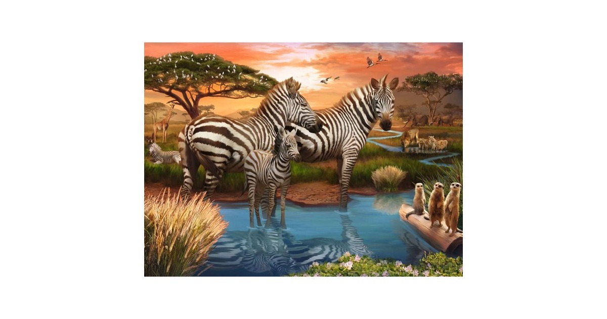 Puzzles von Ravensburger bringen Puzzlespaß in Premiumqualität: Sie erfüllen die höchsten Ansprüche an Material, Motiv und Design - und dies mit einer riesigen Auswahl an Motiven, Formaten und Schwierigkeitsgraden. Hier findet jeder sein perfektes Puzzle: Vom Anfänger bis zum Profi. Dieses Puzzle mit 500 Teilen zeigt eine Szene mit zwei Zebras und Erdmännchen am Wasserloch.Art.-Nr.: 1895201