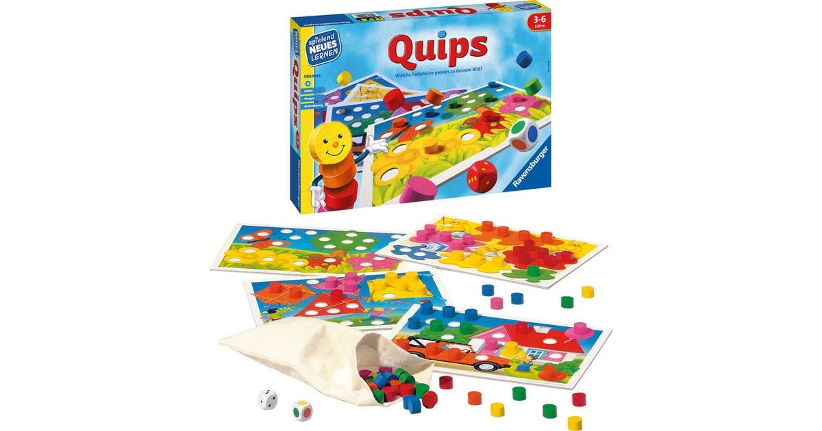 Wer greift die richtige Anzahl an Steinen aus dem Beutel? Wer würfelt die richtige Farbe? Im Dach fehlen zwei rote, im Baum drei grüne Holzsteine. Jedes Kind hat eine Legetafel und muss darauf achten, dass die farbigen Holzsteine auf dem richtigen Feld landen. Farben werden verglichen und zugeordnet, fehlende Steine abgezählt. Wer als Erster sein Bild mit Farben gefüllt hat, gewinnt das Spiel.Art.-Nr.: 1405182