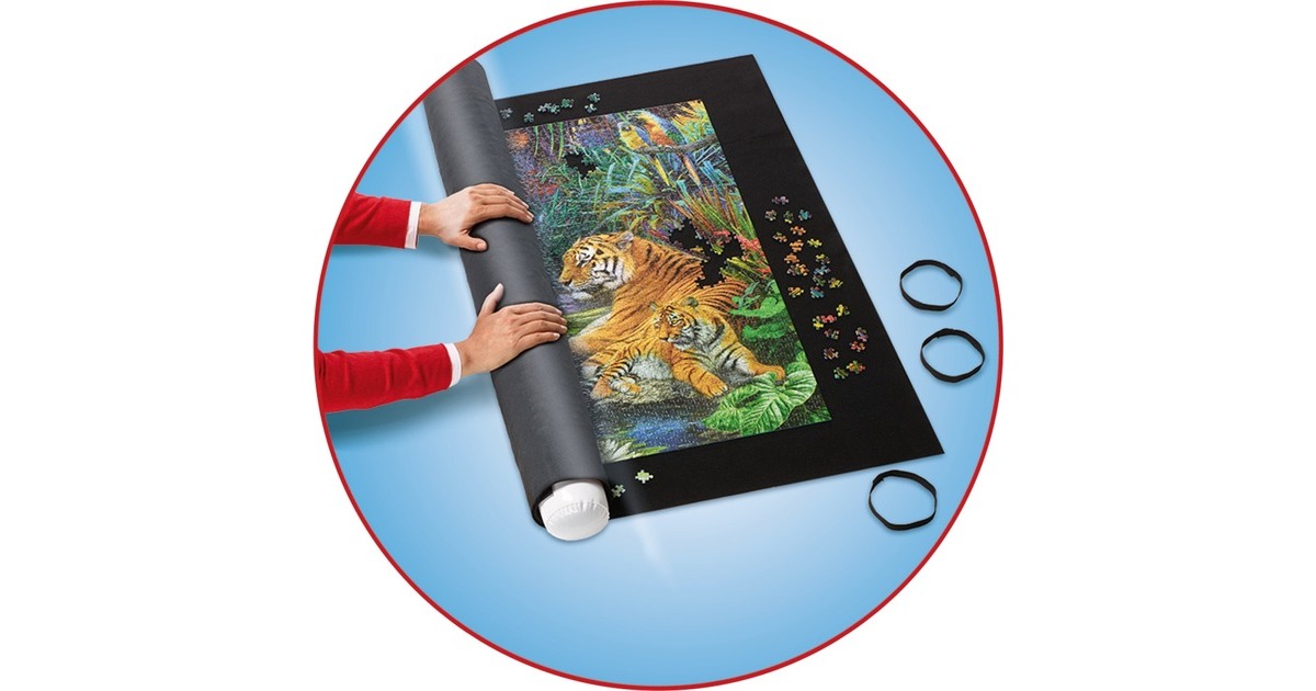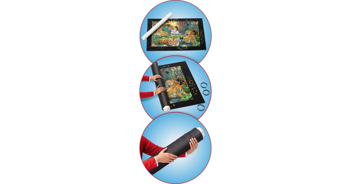 Mit diesem praktische Puzzle-Aufbewahrungssystem lassen sich angefangene oder fertige Puzzle platzsparend aufbewahren oder sicher transportieren. Roll your Puzzle XXXL besteht aus einer Filzunterlage, an der die Puzzleteile haften und einer aufblasbaren Rolle. Puzzle bis zu 3000 Teilen lassen sich somit aufrollen und benötigen dadurch nur noch wenig Platz.Art.-Nr.: 1356821