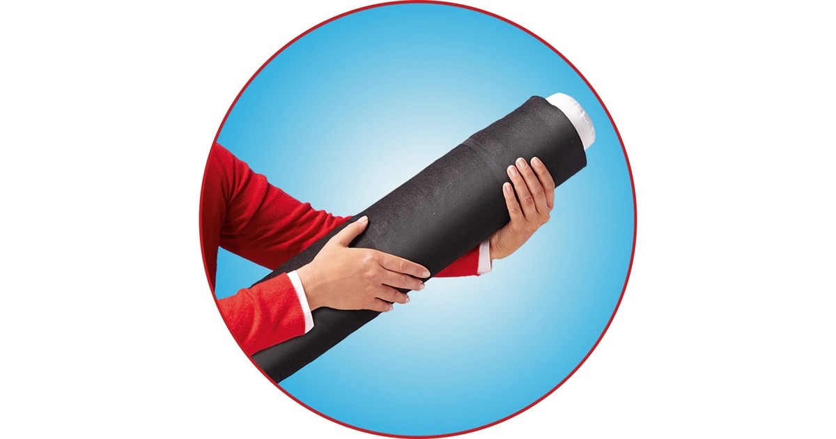 Inhalt: 1 rutschfeste Filzunterlage mit den Maßen 150x100 cm, 1 aufblasbare Rolle, 3 Gummibänder zum Fixieren. |