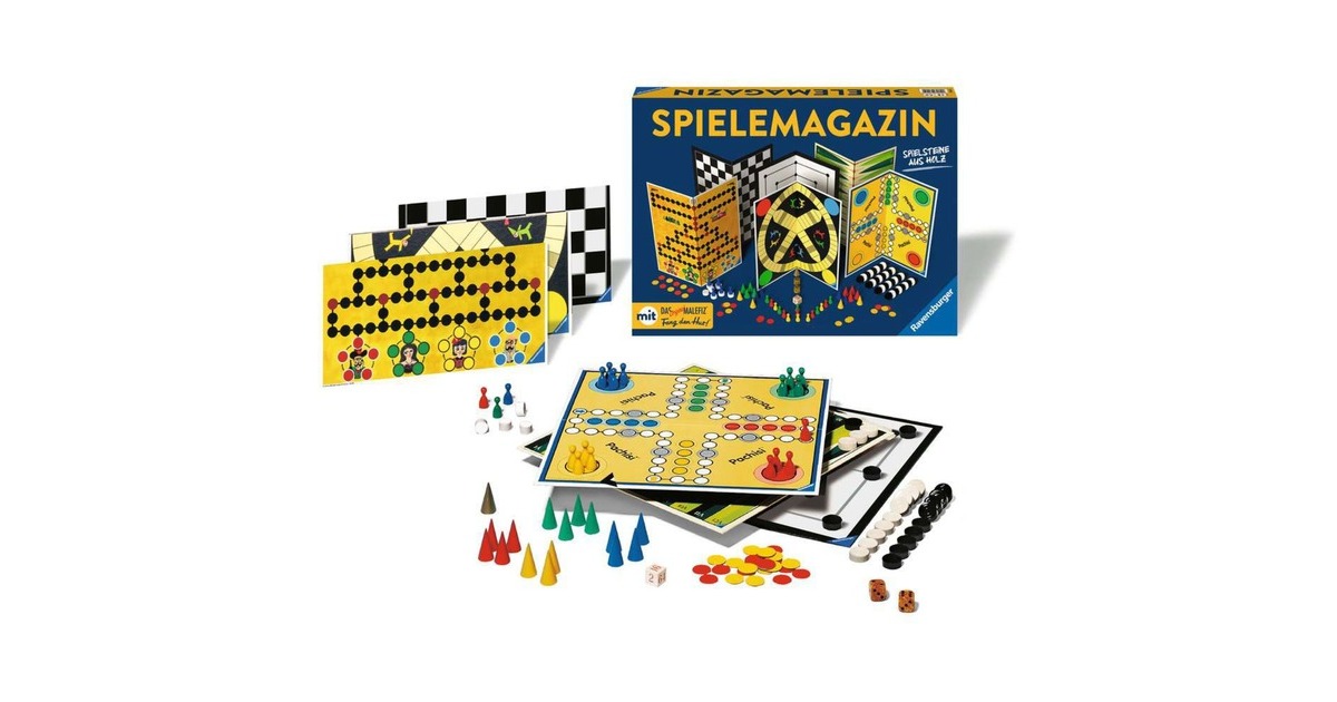 Die Spielesammlung Spielemagazin bietet eine breite Palette für geselligen Spielspaß: Würfelspiele werden hier mit klassischen Brettspielen und lustigen Knobelspielen kombiniert. Mit dabei sind unter anderem Dame, Mühle, Backgammon, Malefiz und Fang den Hut - mit vielen Varianten. Ein ausführliches Regelheft erleichtert den schnelle Einstieg. Insgesamt sind über 50 Spielmöglichkeiten enthalten.Art.-Nr.: 1828756