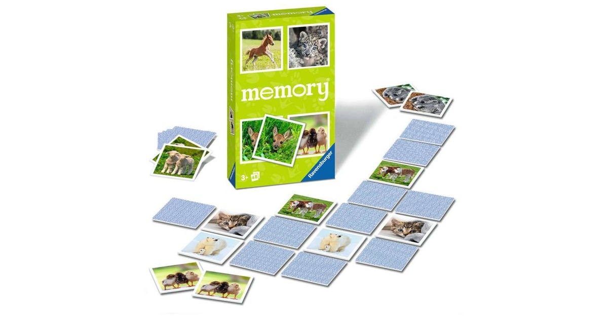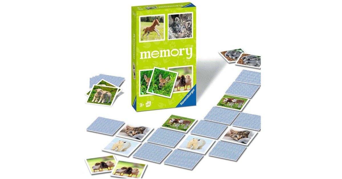 Das klassische Merkspiel von Ravensburger: Bei memory müssen Kartenpaare gefunden werden , doch sie sind nicht immer sichtbar, denn nach dem Aufdecken werden sie immer wieder umgedreht. Ausnahme: Ein Paar wird gefunden - dieses darf der Spieler dann behalten. Wer die meisten Paare sammelt, gewinnt das Spiel. Konzentration und ein gutes Gedächtnis sind also gefragt - und oft gewinnen bei diesem tollen Familienspiel die Kleinen gegen die Großen! Diese memory-Version enthält jede Menge süße Tierbabies: Zum Beispiel Fohlen, ein Rehkitz oder Küken. 24 Bildpaare gibt es zu entdecken.Art.-Nr.: 100038836
