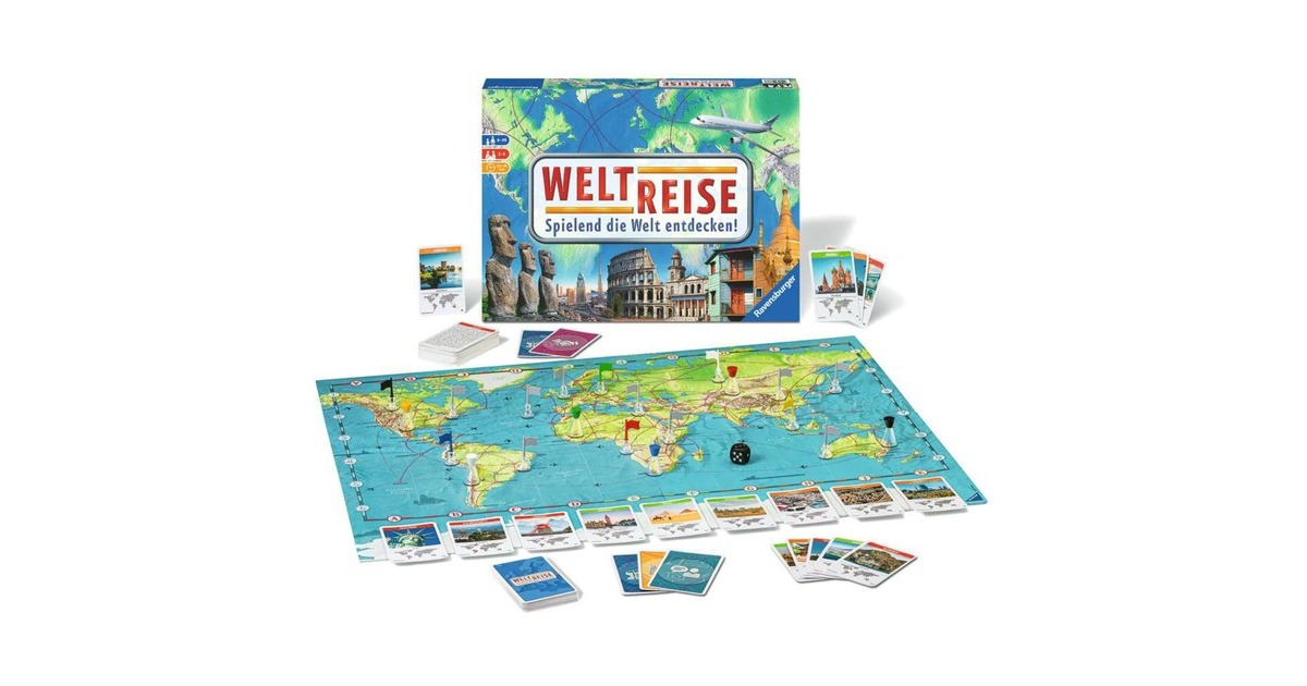 Im Familienspiel „Weltreise“ besuchen die Spieler die interessantesten Orte der Welt. Zufällig verteilte Städtekarten bestimmen jede Partie eine neue, für jeden Spieler unterschiedliche Reiseroute. Von Tokio über London nach New York – oder von Rio de Janeiro nach Kapstadt und Hongkong? Auf jeden Fall heißt es: clever planen. Die große Tour fordert Taktik und etwas Würfelglück! 173 lohnende Reiseziele warten auf die Spieler, darunter Pflichtreiseziele und freie Reiseziele, die zusätzliche Punkte bringen. Unterwegs ist es möglich, die Mitspieler mit Aktionskarten von ihrer Reiseroute abzubringen und zu sich einzuladen. Es ist auch möglich, seine eigene Route abkürzen, indem man einen anderen Spieler besucht oder ein ungünstig gelegenes Ziel einfach austauscht. Gewonnen hat die „Weltreise“, wer als Erster nach allen Reisezielen wieder am Ausgangsort angekommen ist und die meisten Punkte gesammelt hat. Und wer während des Spiels die Infotexte auf den Städtekarten liest, bereist nicht nur die Welt, sondern lernt auch jede Menge Wissenswertes über San Francisco, Montreal, Seoul und Co. Jede Partie nimmt die Spieler mit auf eine neue, spannende Weltreise, bei der es jede Menge zu entdecken gibt!Art.-Nr.: 1674206