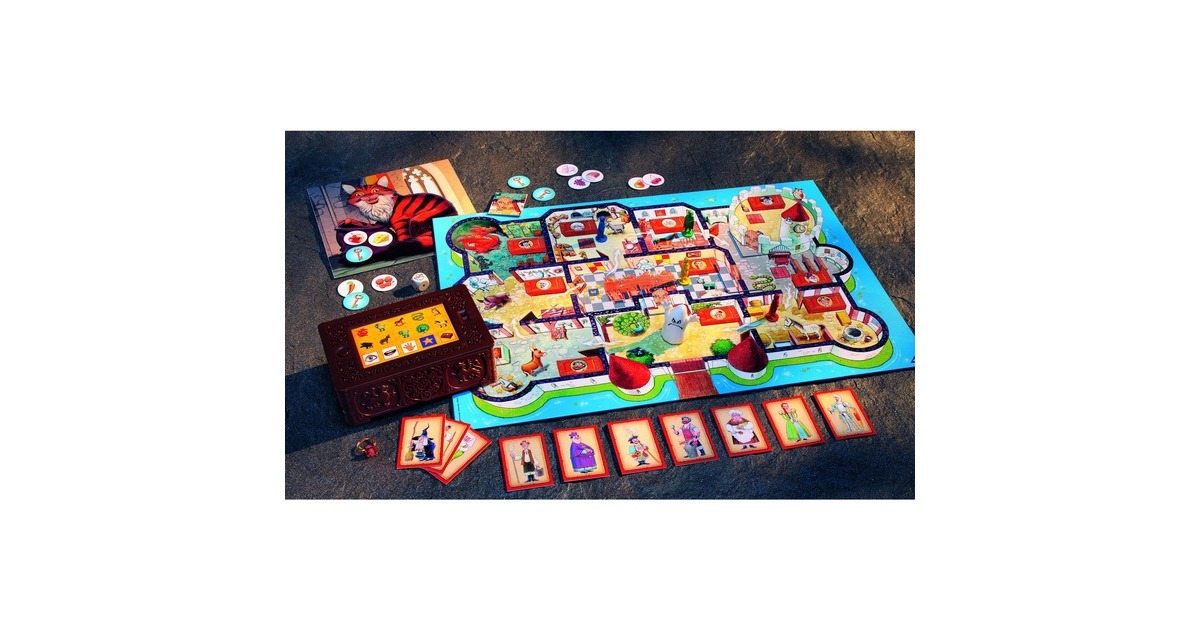 Inhalt/Ausstattung: 1 magische Truhe mit elektronischer Einheit, 1 Spielplan, 4 Spielfiguren, 1 Geist, 1 Katze, 9 Futterstücke, 4 Schlüssel, 4 Türen, 1 Würfel, 10 Bilder der Verdächtigen, 1 Ring |